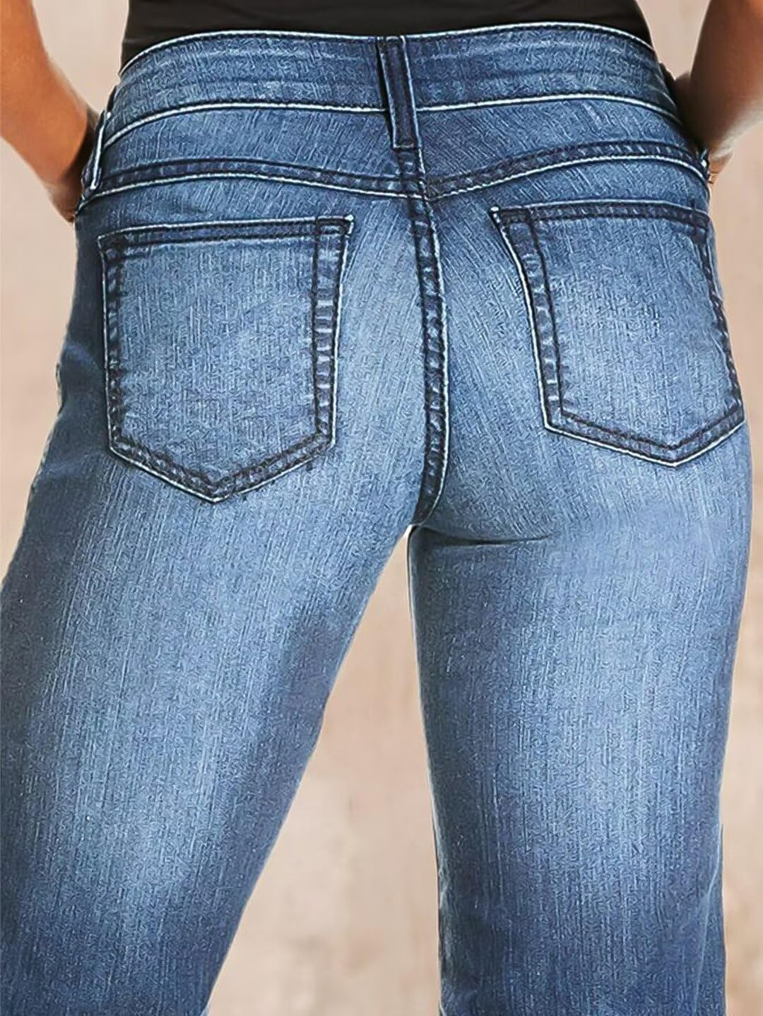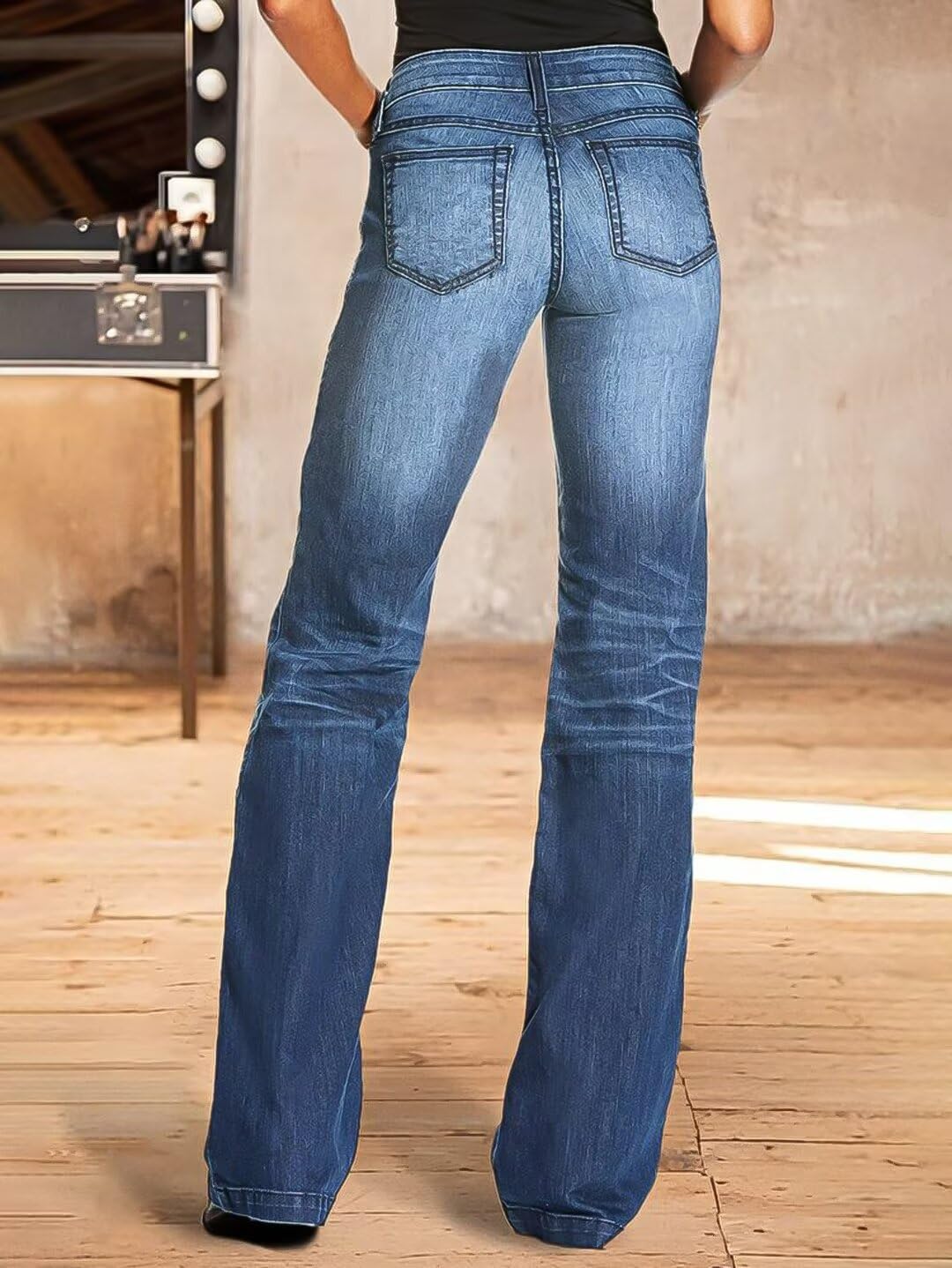 Flamingals Women’s Bootcut Jeans Mid Waisted Stretchy Casual Wash Detail Denim Jeans