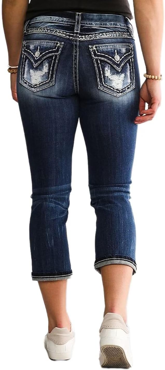 Flamingals Women’s Butt Lifting Straight Leg Jeans Stretchy Ripped Curvy Denim Jeans