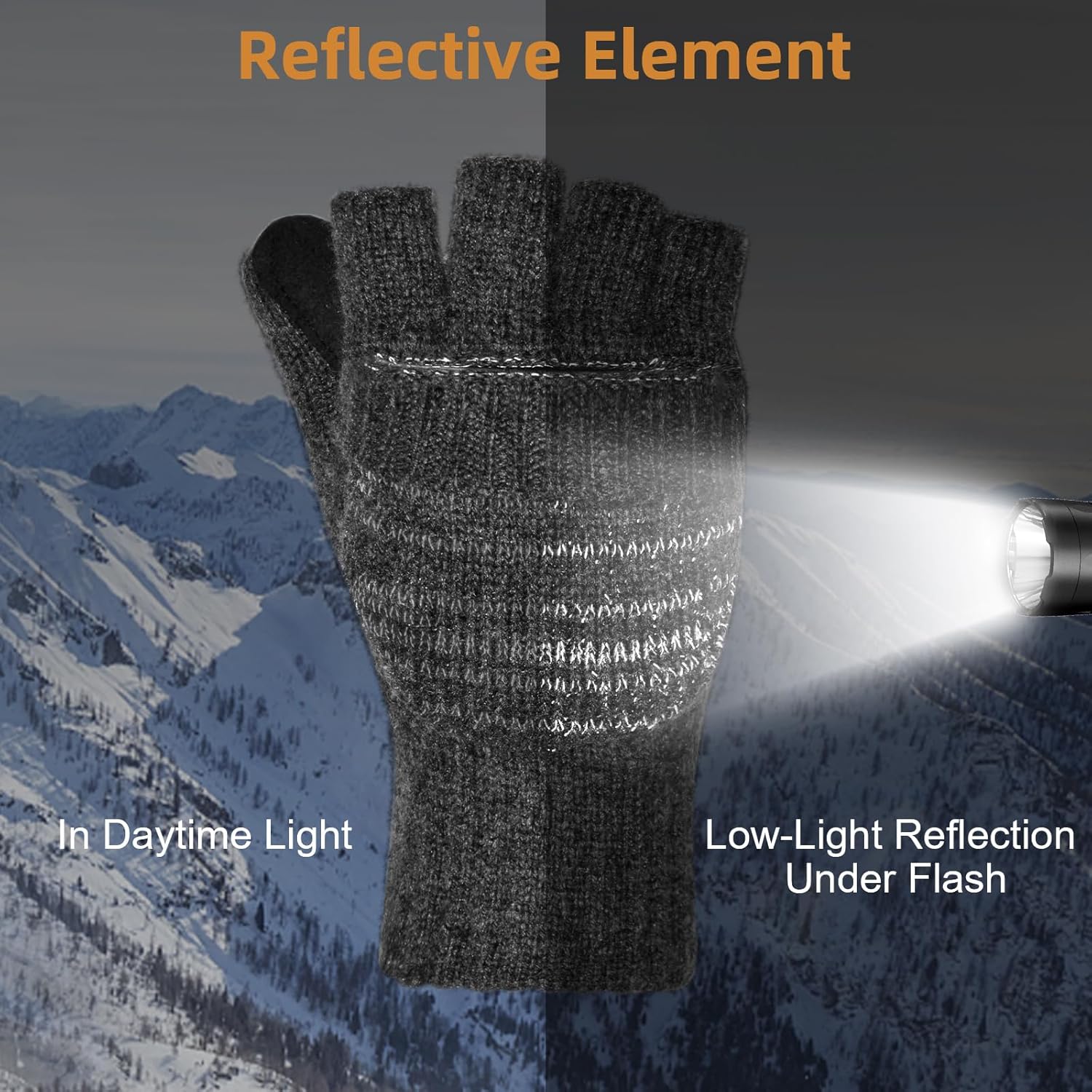 Flip Winter Gloves, Wool Fingerless Gloves for Women Men Cold Weather, Mittens with Reflective & Warmers Gift