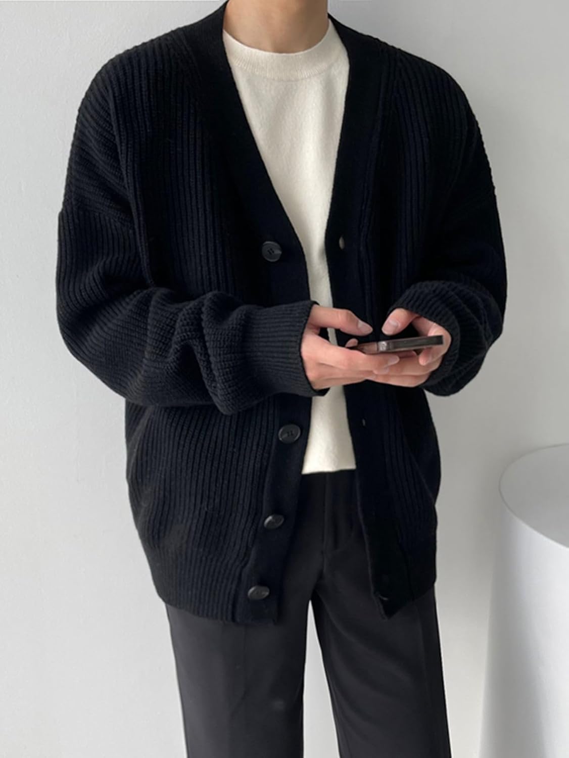 Floerns Men’s Casual Long Sleeve Button Front V Neck Rib Knit Cardigan Sweater
