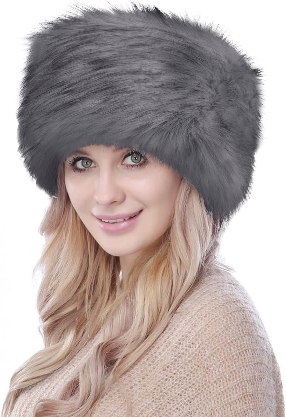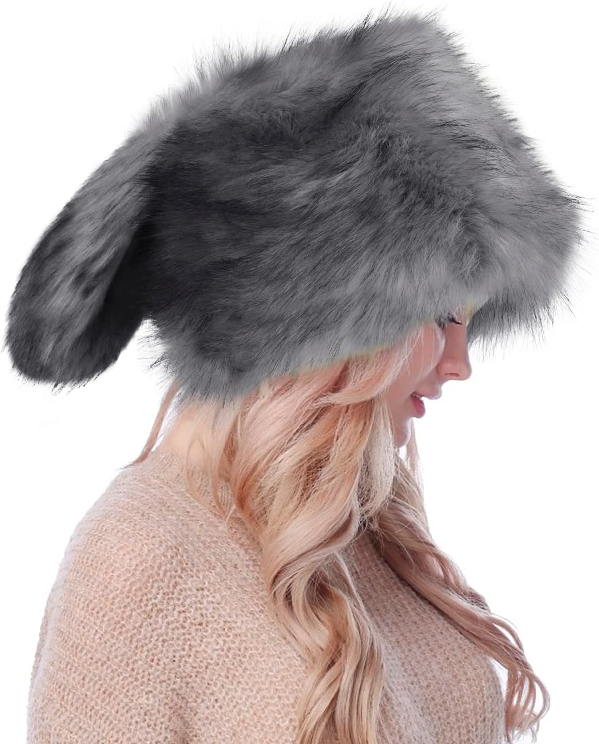 Fluffy Faux Fur Russian Hat for Men Women Elders, Classic Cossack Winter Hat Thick Windproof Camping Ice Fishing Hunting Hat