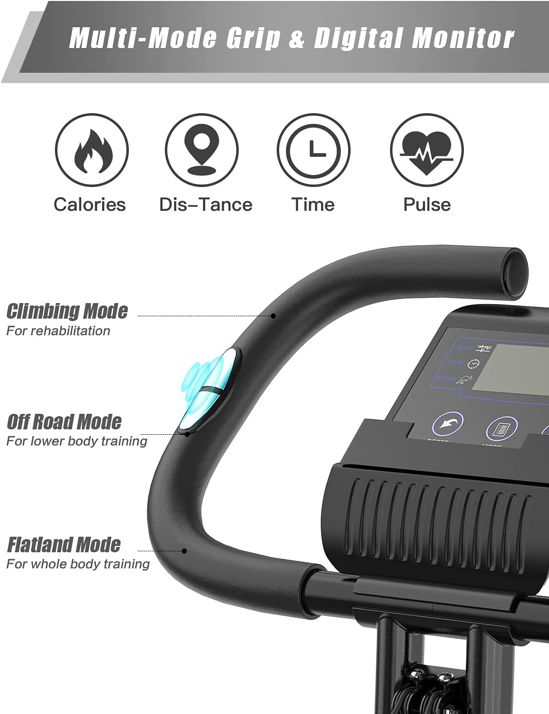 Folding Exercise Bike with Arm Resistance Bands, Magnetic Upright Indoor Cycling Bike Stationary for Home Gym & Cardio Workout