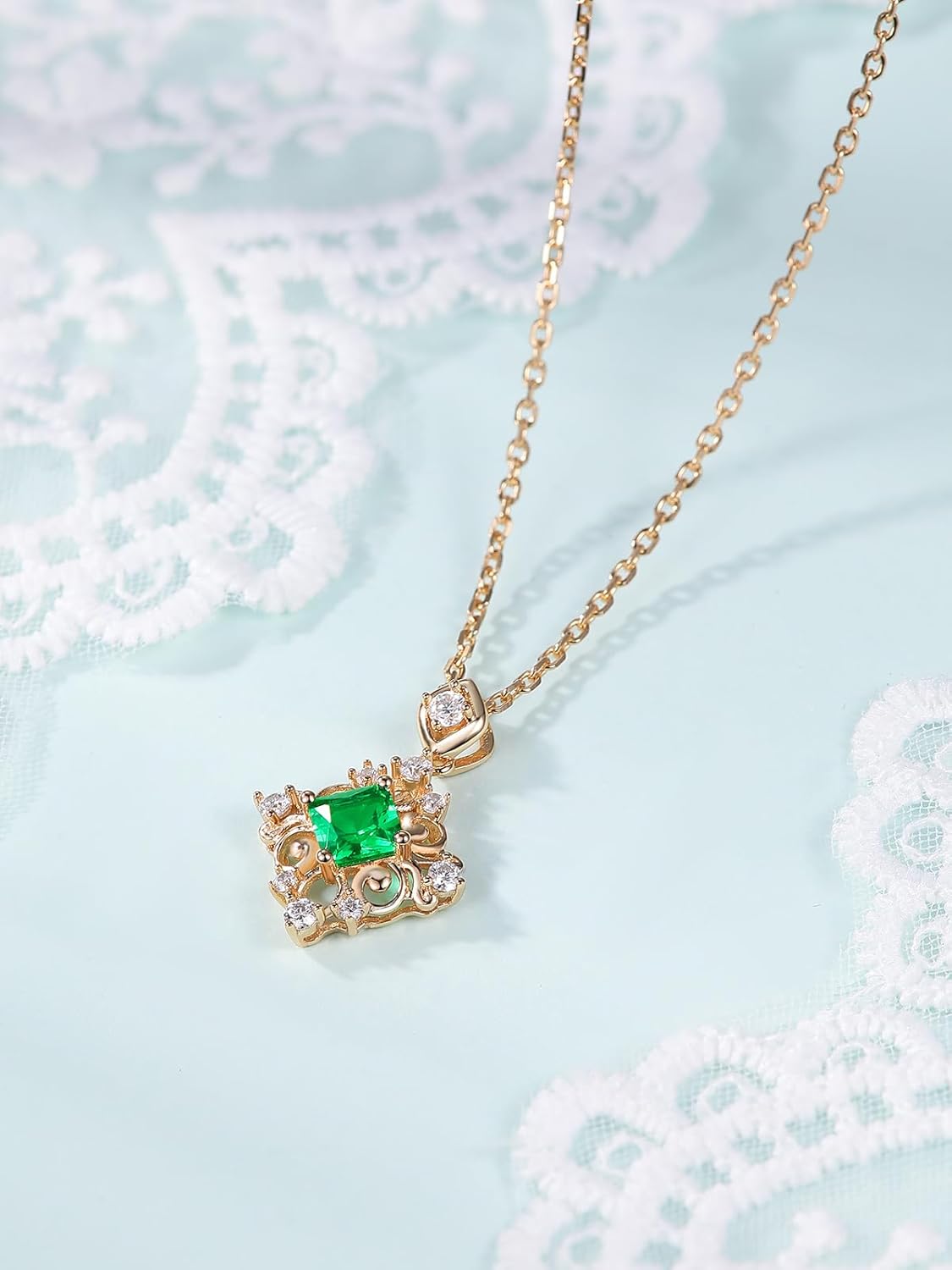 FWM Moissanite Green Emerald Sparkly Pendant Necklace for Women, Ankh Cross/Flower/Round Cross/Square Vintage Design, Solid 925 Sterling Silver, Present to Wife Girlfriend Mom Daughter