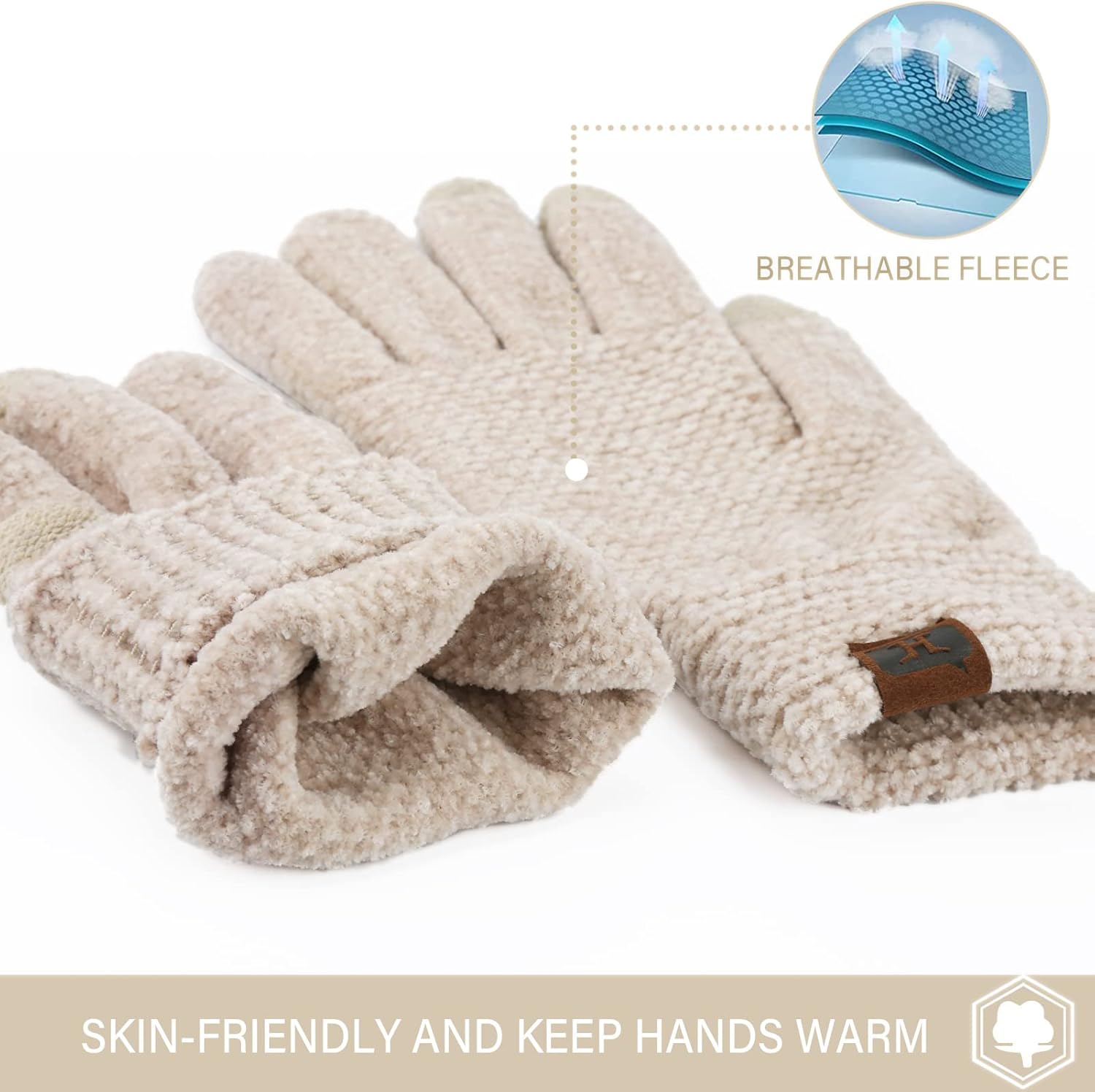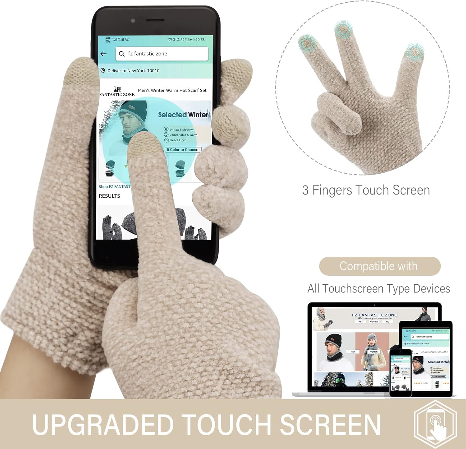 FZ FANTASTIC ZONE Womens Winter Touchscreen Gloves for Cold Weather, Chenille Warm Knit Gloves