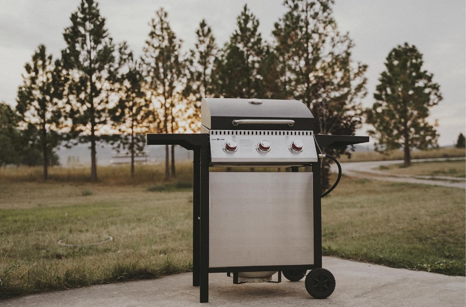 GasOne 3 Burner Gas Grill Stainless Steel– Outdoor Grill Cabinet Style with Wheels – High-Temperature Paint Coating Gas BBQ Grill – Elegant and Luxurious Design