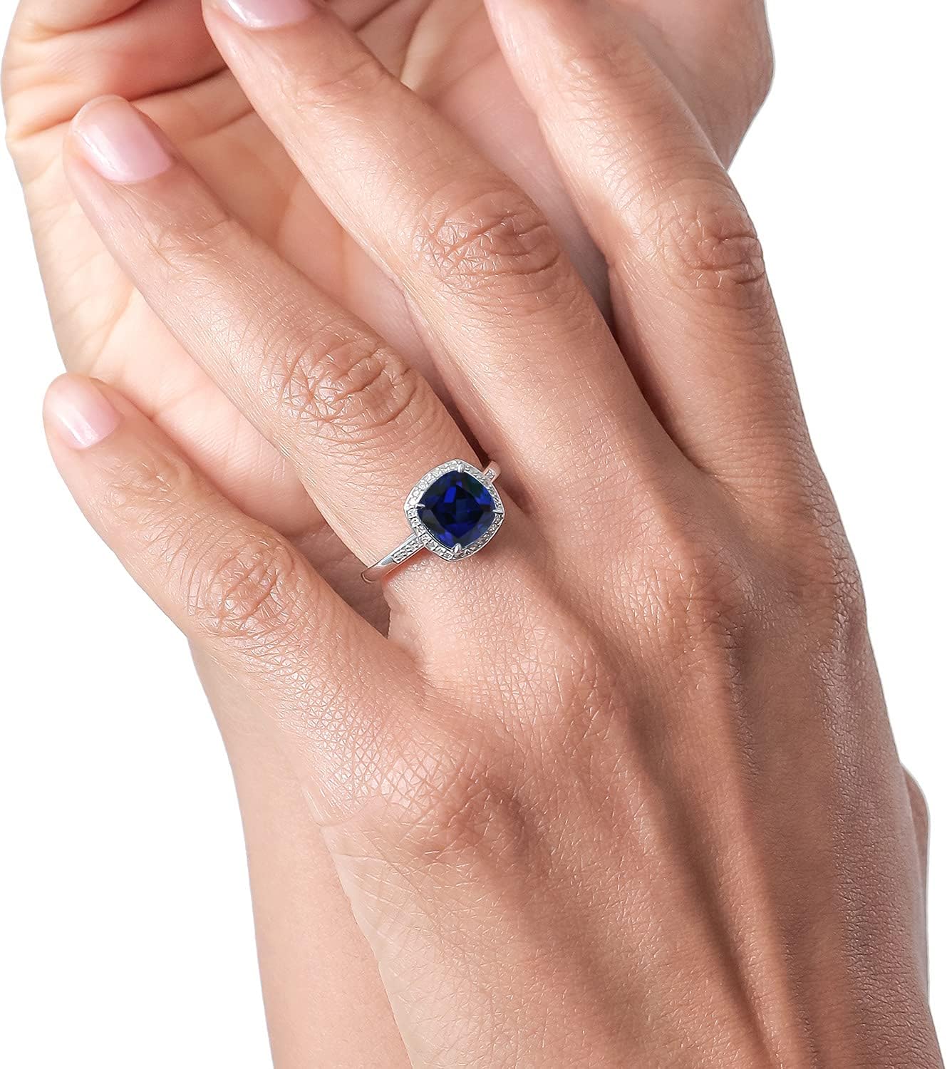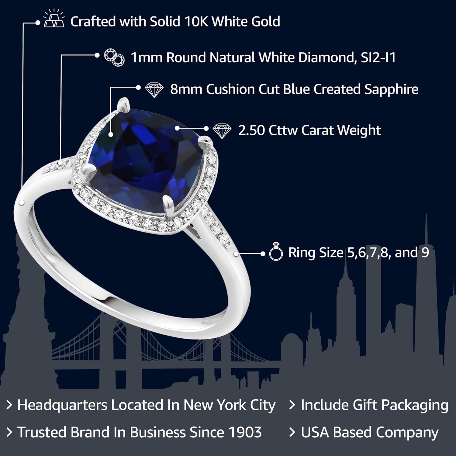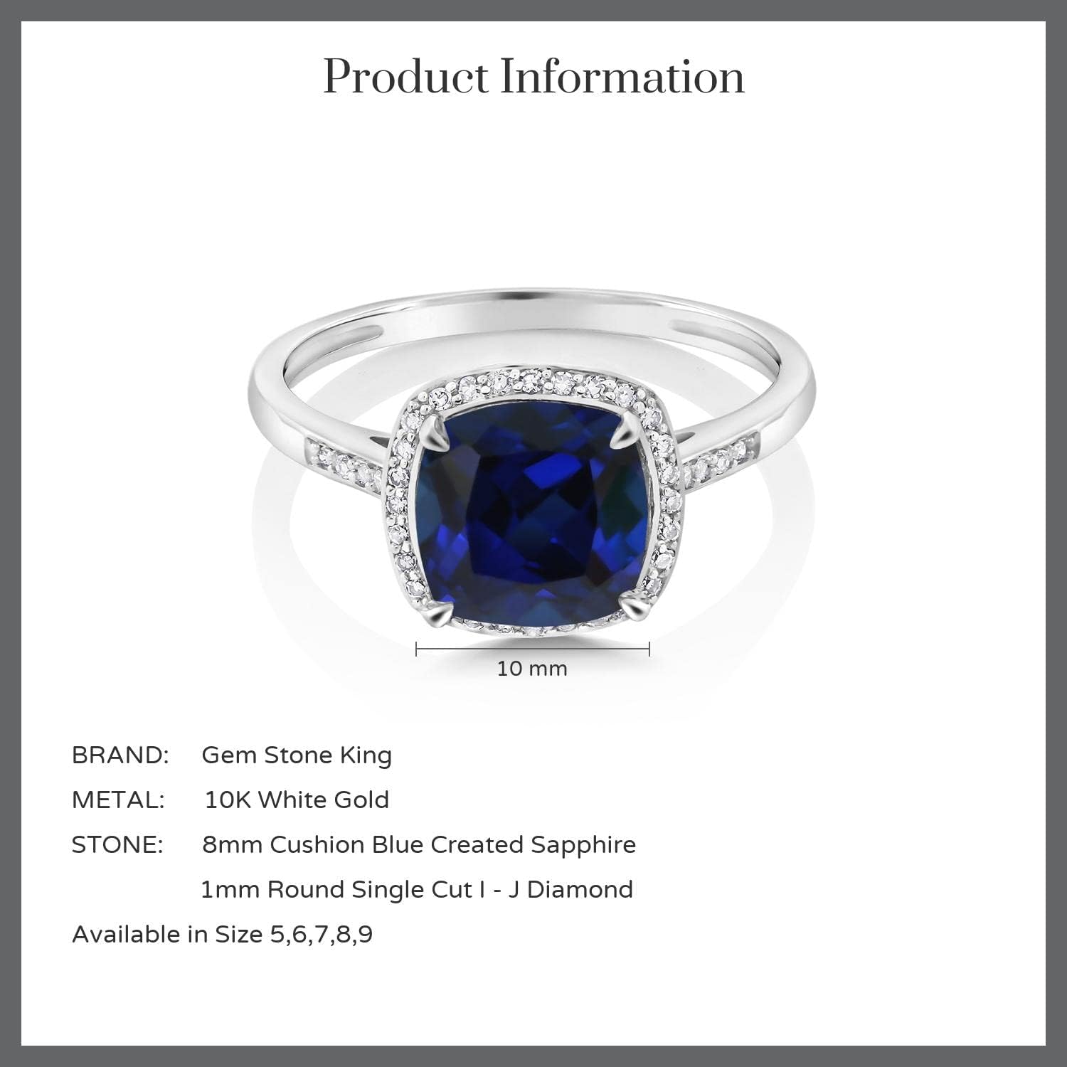 Gem Stone King 10K White Gold 8MM Cushion Cut Gemstone Birthstone and White Diamonds Halo Engagement Ring For Women | Wedding Anniversary Promise Ring | Available In Size 5, 6, 7, 8, 9