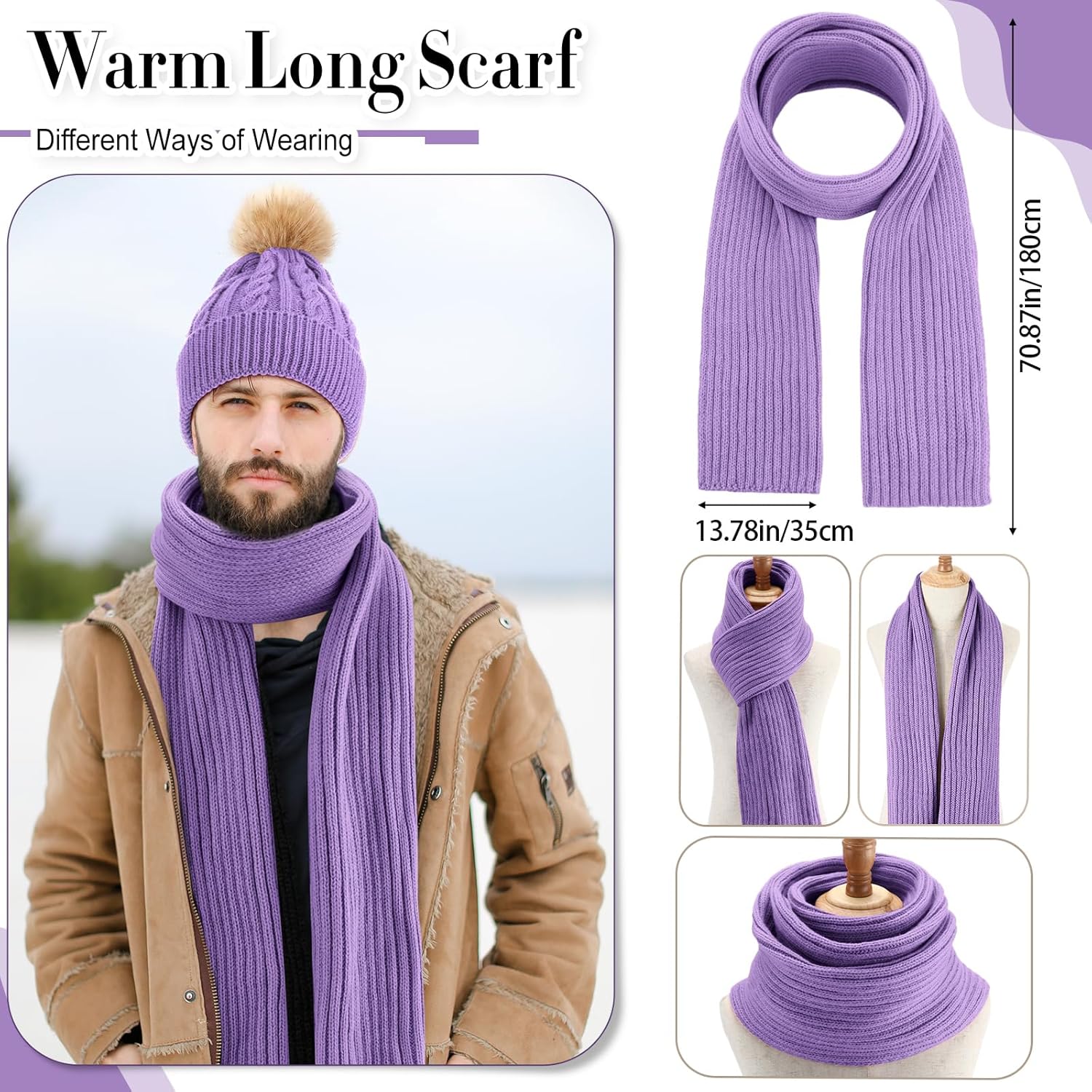 Geyoga 3 Pieces Winter Beanie Hat Scarf Touch Screen Warm Gloves Set Knit Skull Cap for Men and Women