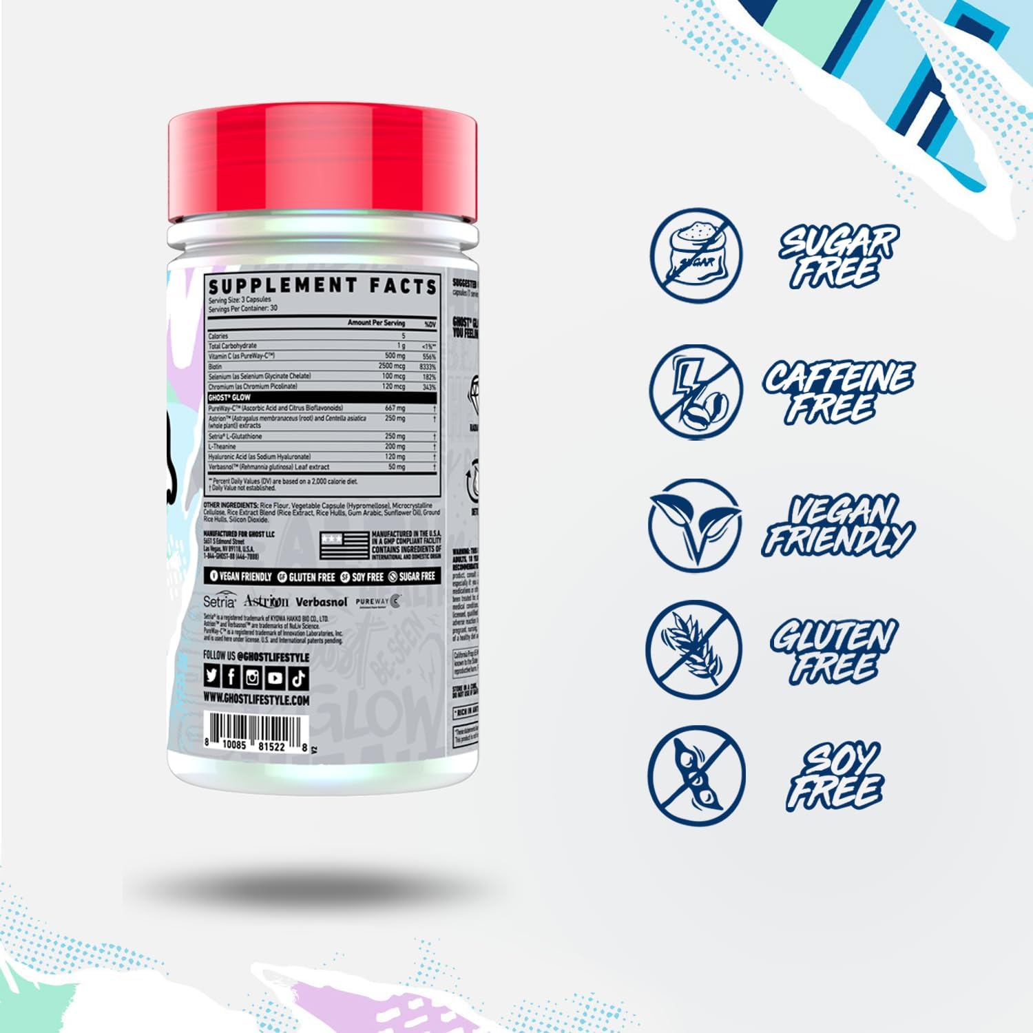 Ready. Set. Glow.: GHOST Glow is a skin-boosting, antioxidant powerhouse conceived to keep you feeling 100 inside and out.* This fully efficacious formula comes in convenient capsules. 3 capsules per serving, 30 servings per container.