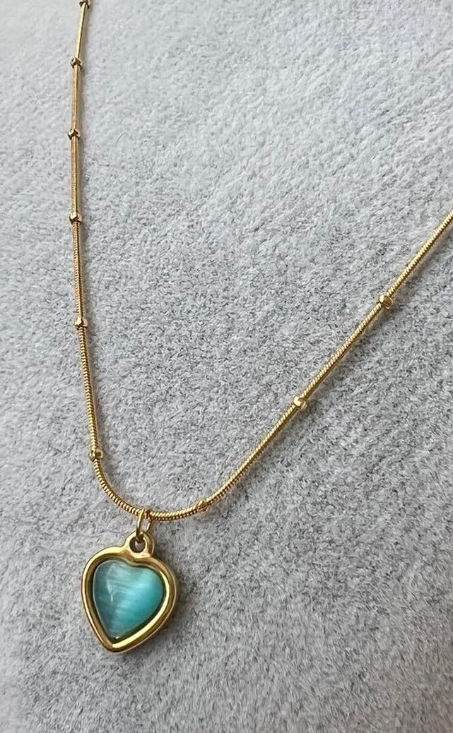 Turquoise Heart Necklace – Elegant, Timeless & Meaningful Add a touch of elegance to your jewelry collection with this stunning turquoise heart necklace. Designed with 18K gold-plated stainless steel, this pendant is waterproof, tarnish-resistant, and hypoallergenic, making it perfect for daily wear. ⭐ Premium Quality & Durability – Crafted from high-quality 316L stainless steel, this necklace won’t fade or tarnish over time. 💖 Minimalist & Versatile Design – A delicate, dainty heart pendant that complements both casual and formal outfits. 🎁 Perfect Gift for Any Occasion – An ideal choice for birthdays, anniversaries, Valentine’s Day, Mother’s Day, or Christmas. 🔗 Adjustable Chain – Comes with a 16” chain + 2” extender, allowing you to customize the fit for a comfortable and stylish look. 🌊 Waterproof & Hypoallergenic – Made for sensitive skin, this necklace is resistant to water, sweat, and daily wear. Enhance your style with this exquisite gold turquoise heart necklace – a timeless piece that symbolizes love, beauty, and elegance.