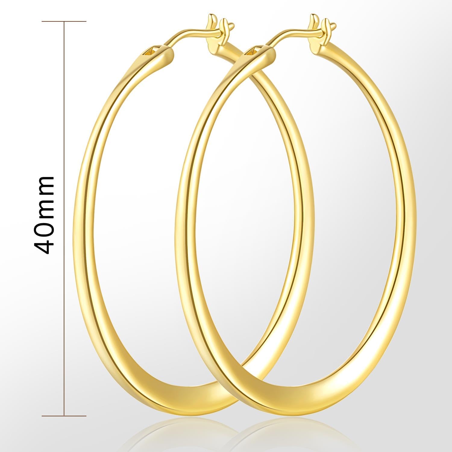 Gold Hoop Earrings for Women 14K Gold Hoop Earrings Flat-Centered Large Womens Hoops Earring 40mm