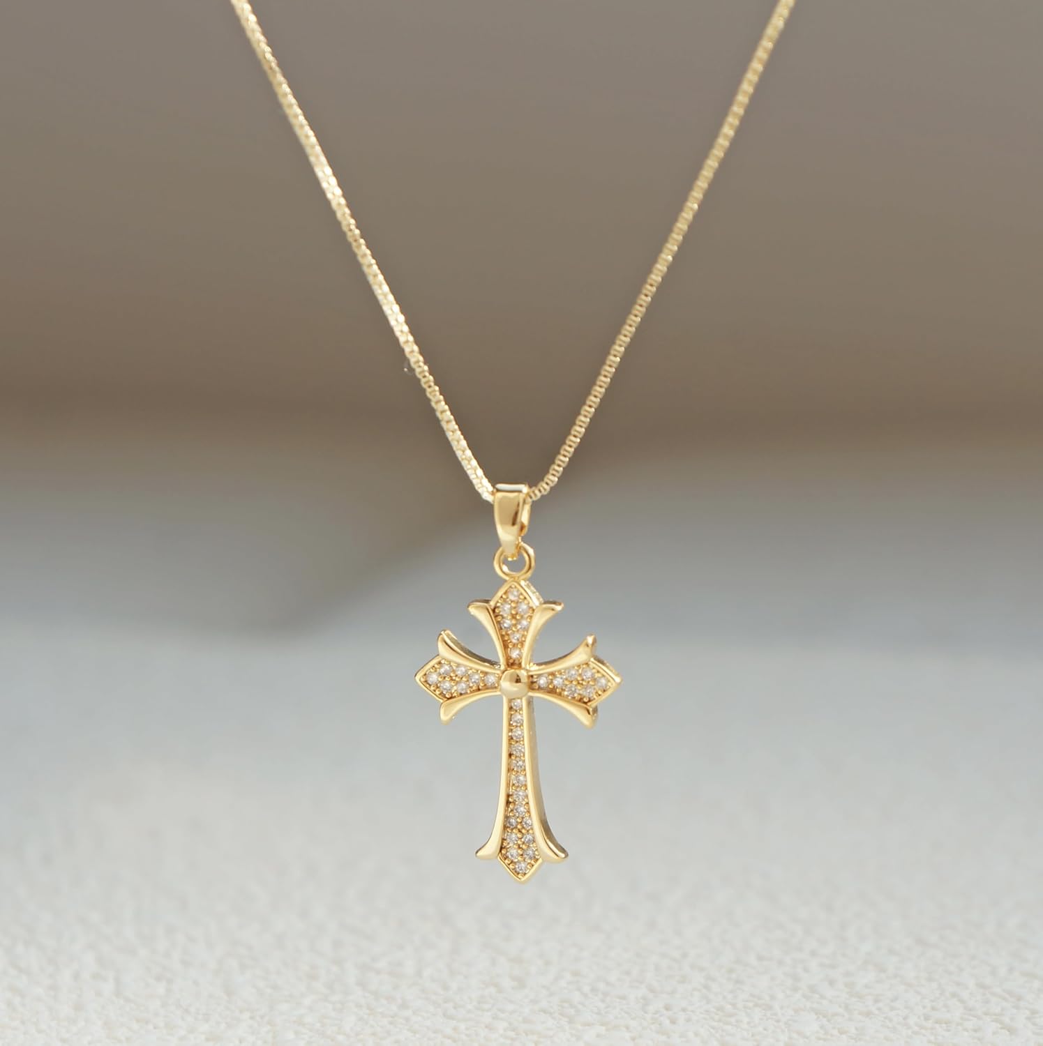 This Womens Cross Shape Faith Necklace is Crafted from Hand Selected 5A Quality Cubic Zirconia and Plated in 14K Gold, pure and clear, with a dazzling shine.