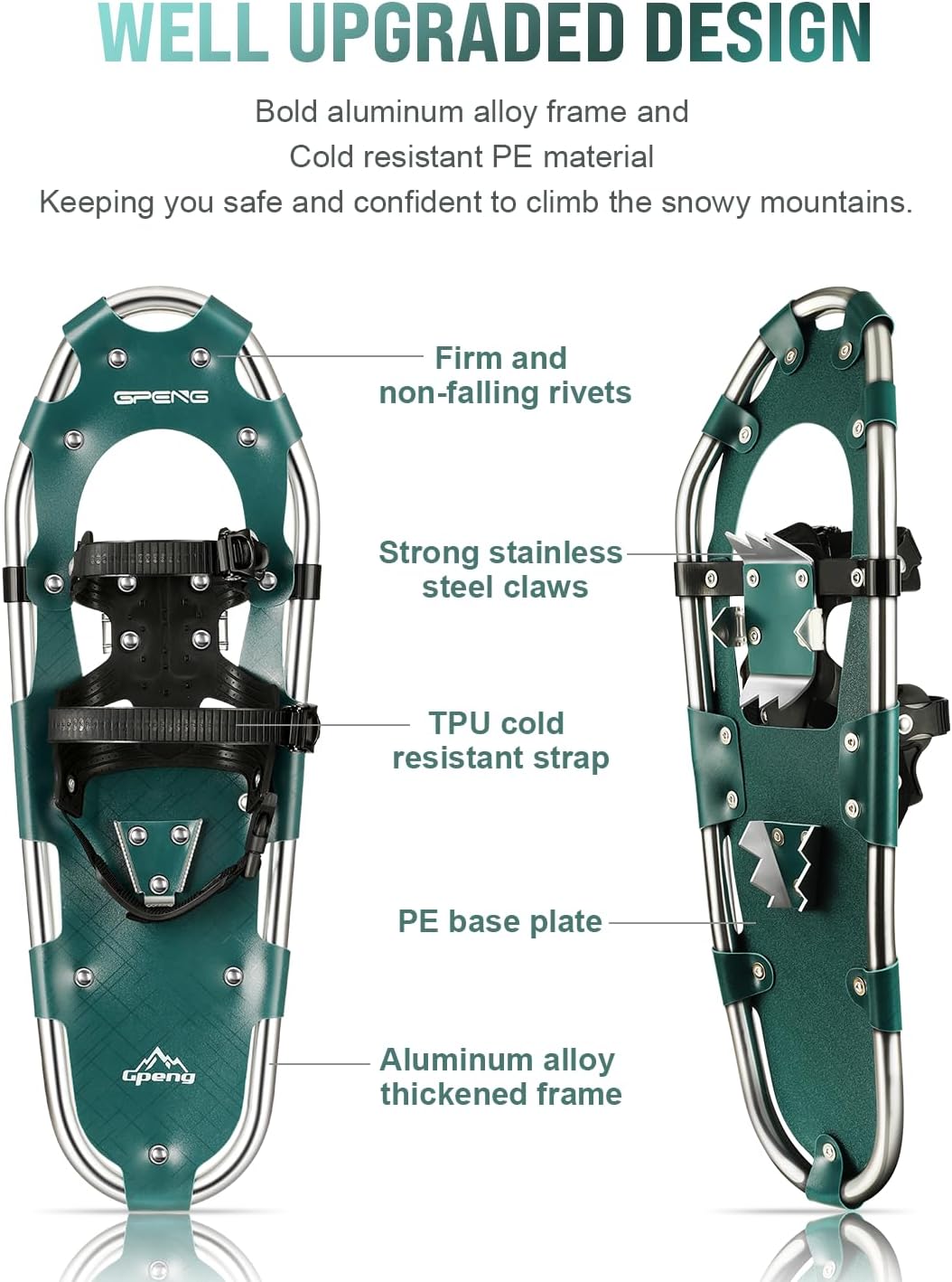 Gpeng Snowshoes for Men Women Youth Kids, Light Weight Aluminum Snow Shoes with Trekking Poles, Crampon Protector and Carrying Tote Bag (Navy Blue, 21 inch)