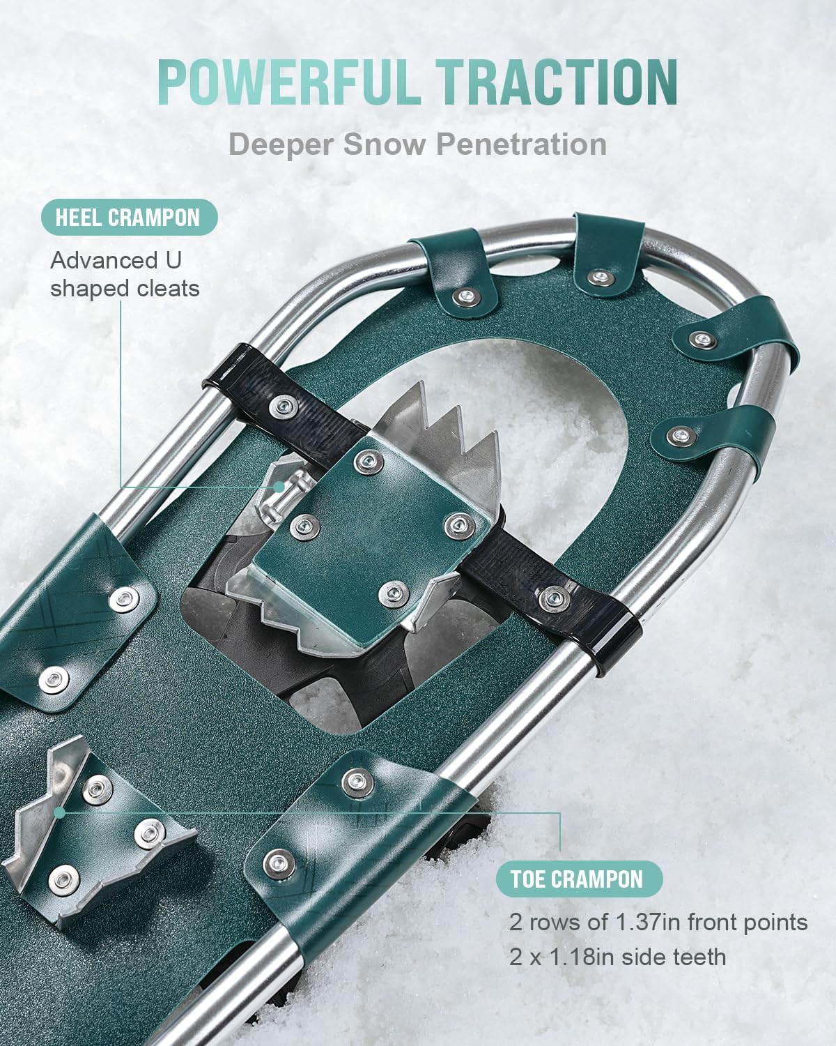 Package Included: A pair of snowshoes + A pair of Snowshoeing Poles + A pair of Claw Protectors + A Carrying bag