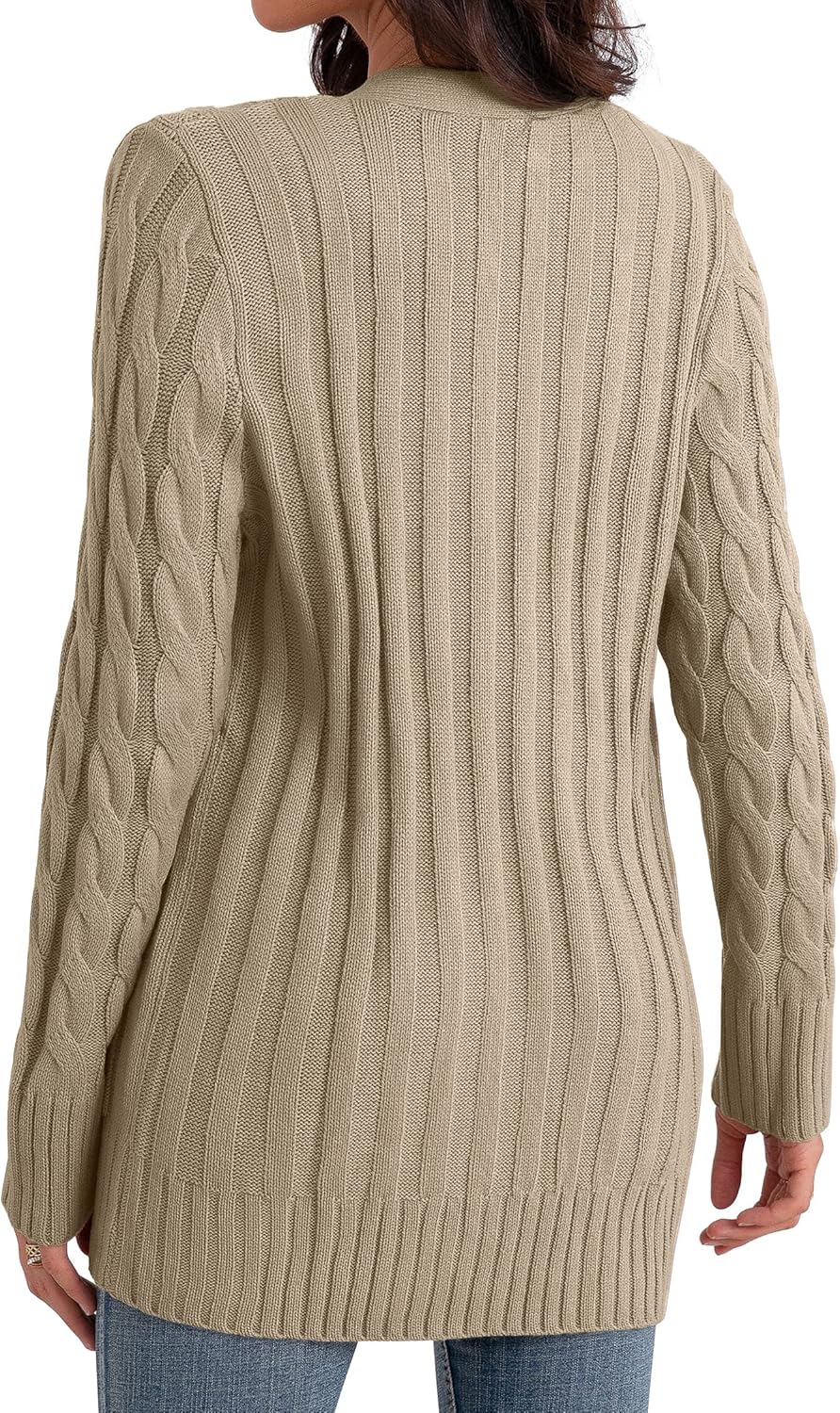 Women’s Long Sleeve Cable Knit Open Front Button Down Outerwear Cardigan Sweater