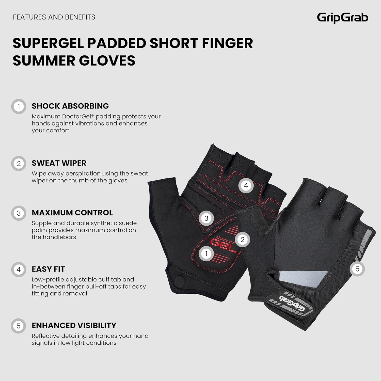 GripGrab SuperGel Padded Half Finger Road Riding Summer Cycling Gloves Bicycle Gloves Biking Gloves for Men Fingerless Cycle Mitts