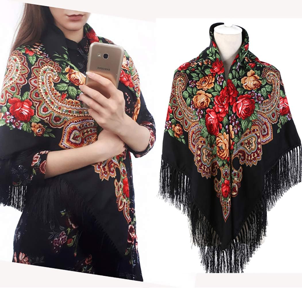 Gudessly Women’s Traditional Scarf Wrap Tassel Shawl Fringes Neck Head Shawl Retro Scarf Floral Poncho Printing Shawl