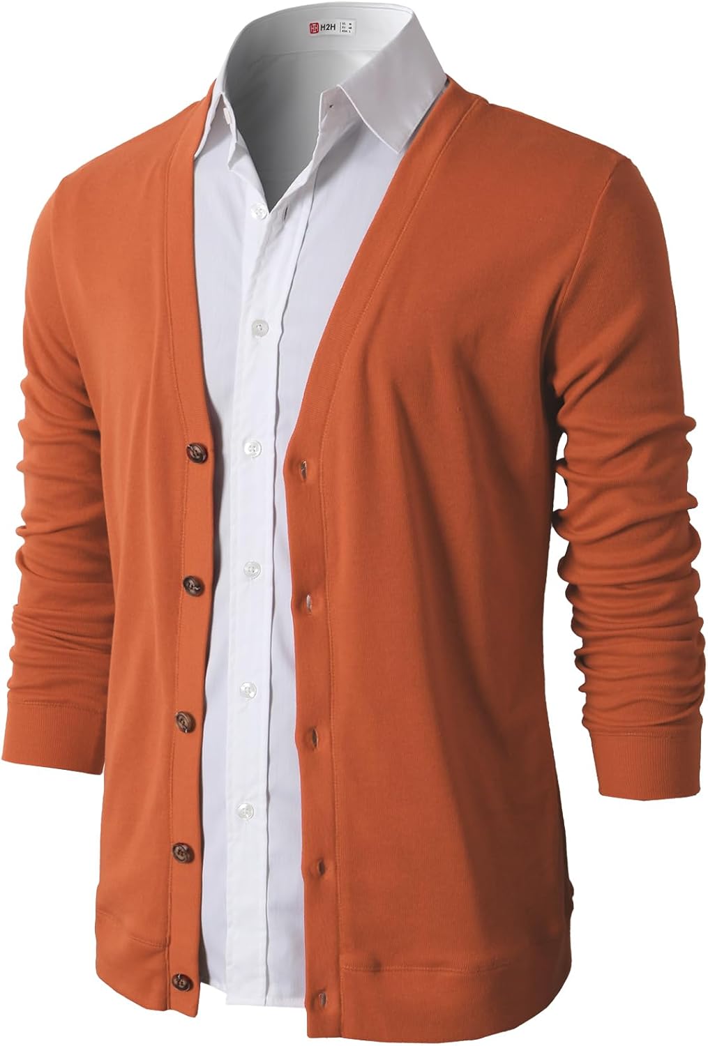 H2H Mens Casual Slim Fit Cardigans V-Neck Basic Designed Long Sleeve Button Down