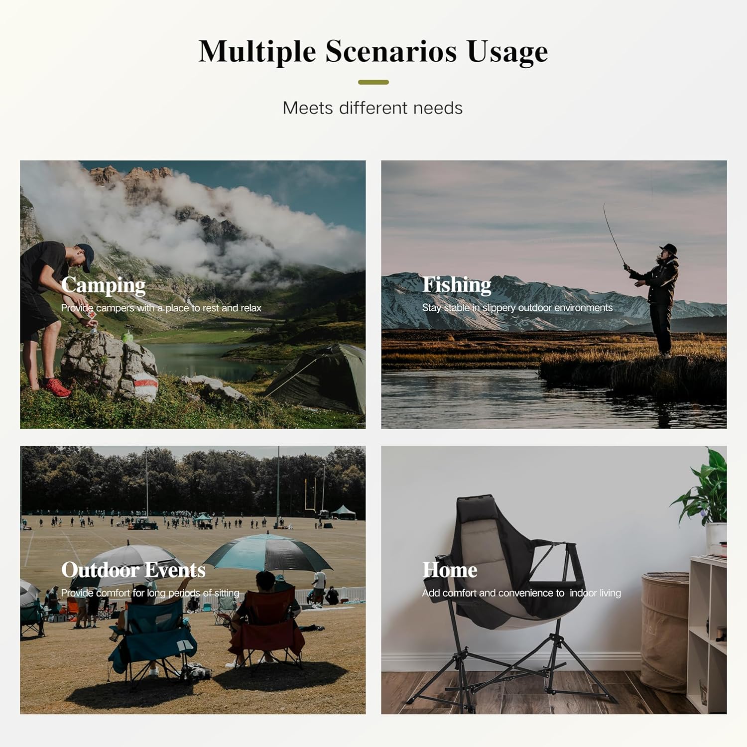 Hammock Camping Chair, Adjustable Back Swinging Chair, Folding Outdoor Rocking Chair, Heavy Duty Portable Camp Chair with Cup Holder and High Back for Adults, Black