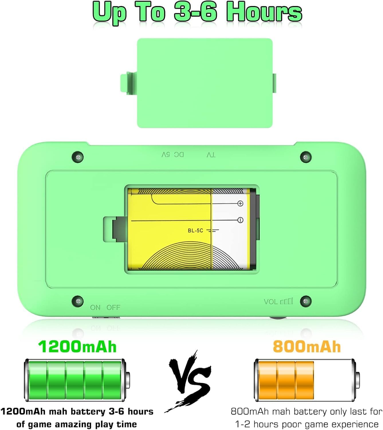 Featuring a powerful 1200mAh rechargeable battery, this game consoles with built in games ensures 3-6 hours of continuous play.