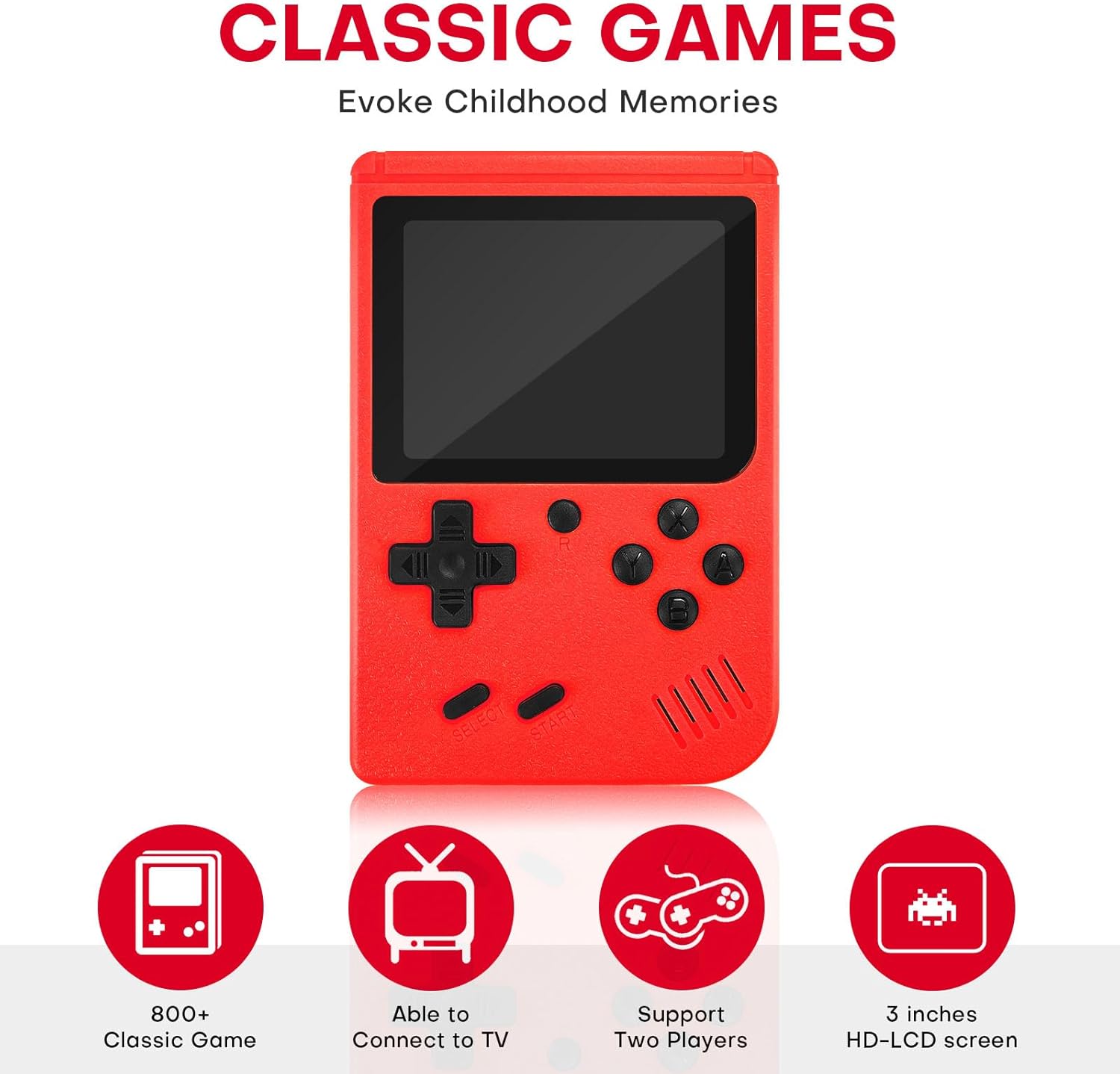 Handheld Game Console with Classical Retro Single and 2 Players, 3.0 Inch Kids Screen Portable Retro Video Game Console Support TV Connection(Red-500 Games)