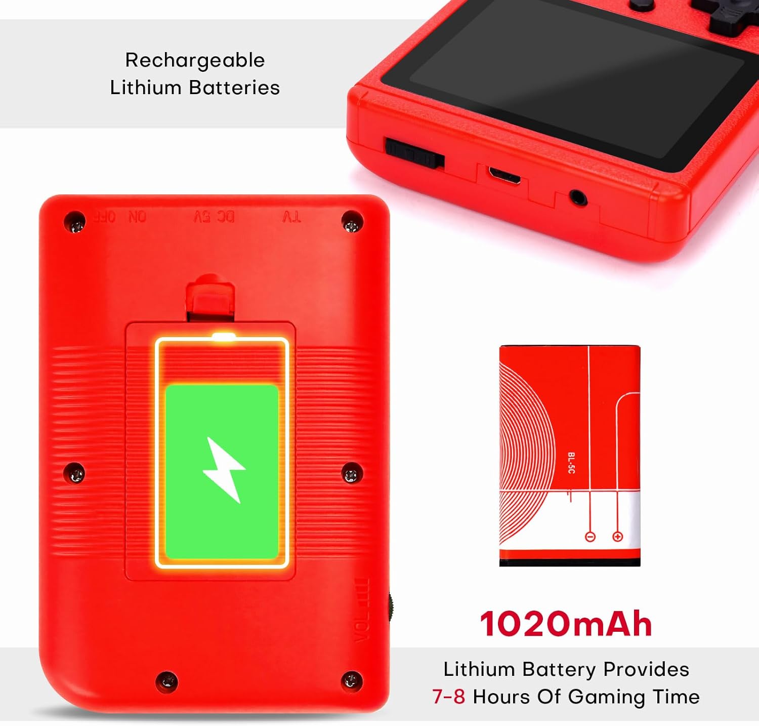 【Portable retro game console】Built-in 1020mAh large-capacity lithium battery. After each full charge, the game can be played for up to 7-10hours. which is ideal for frequent business trips, travel, travel, camping. Never worry about running out of battery again