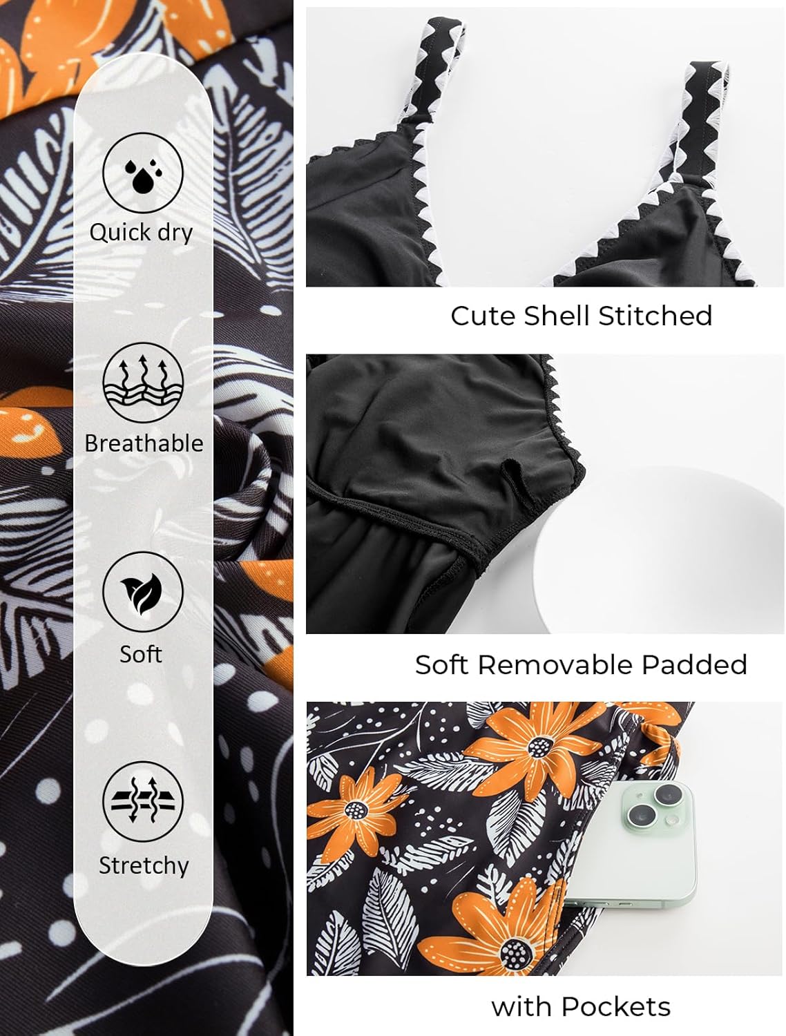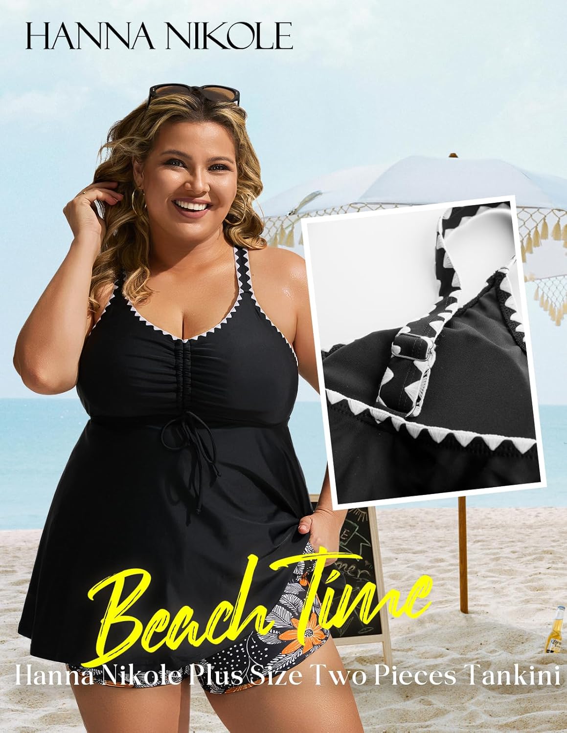 Hanna Nikole Plus Size Tankini Swimsuits for Women 2PCS Sets Shell Stitched Swim Tops + Printed Boy Shorts