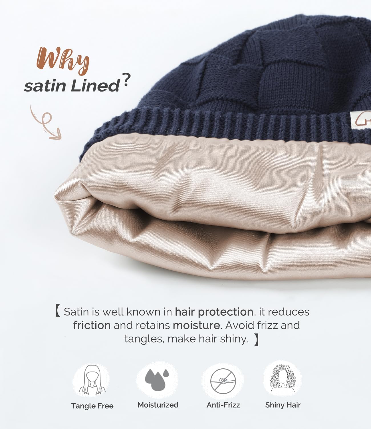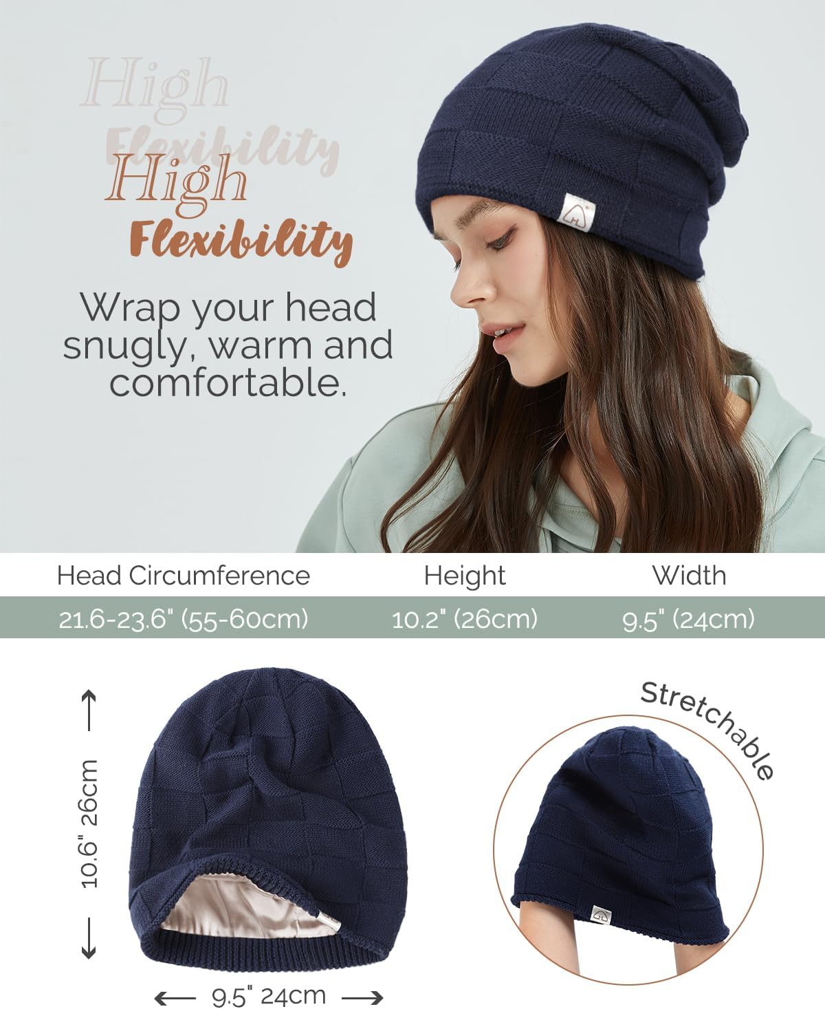 Hat Hut Womens Beanie Satin Lined Beanie Winter Hats for Women Men, Silk Lined Slouchy Beanie Hats Soft Warm Ski Hat Unisex