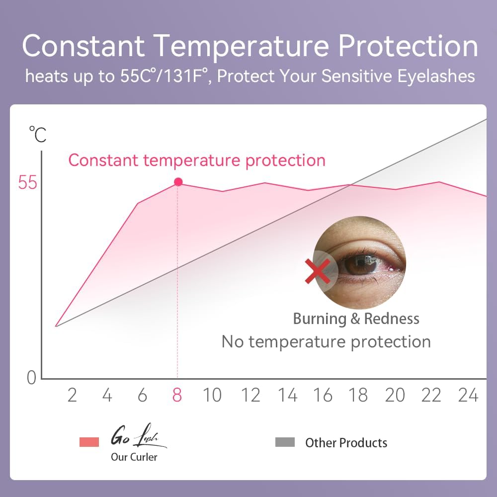NO PAIN & ANTI-BURN: Safeguard your sensitive lashes and eyelids with this cutting-edge temperature control technology. Further equiped with heat sensitive silicone pad, no more burning or pinching the skin, just perfect curls.