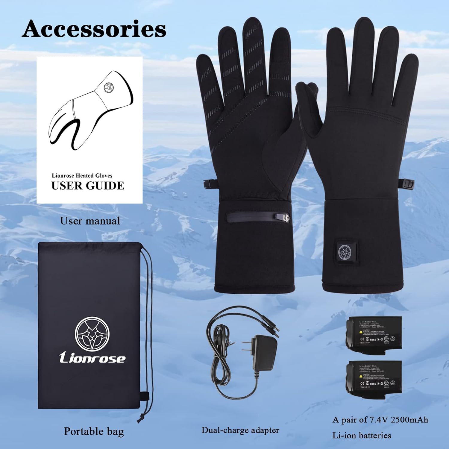 Lionrose Heated Gloves Liners Electric Gloves with Rechargeable Battery for Men Women in Winter