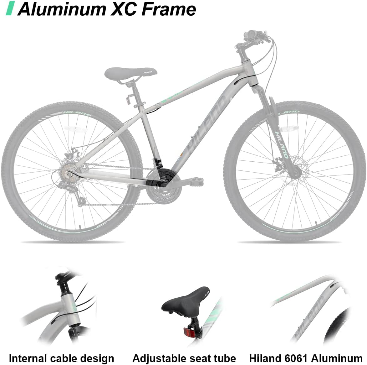 Hiland 29 Inch Mens Mountain Bike, 17/19 Aluminum Frame, 21 Speeds, Dual Disc Brakes, Suspension Fork Bicycle for Men Adult