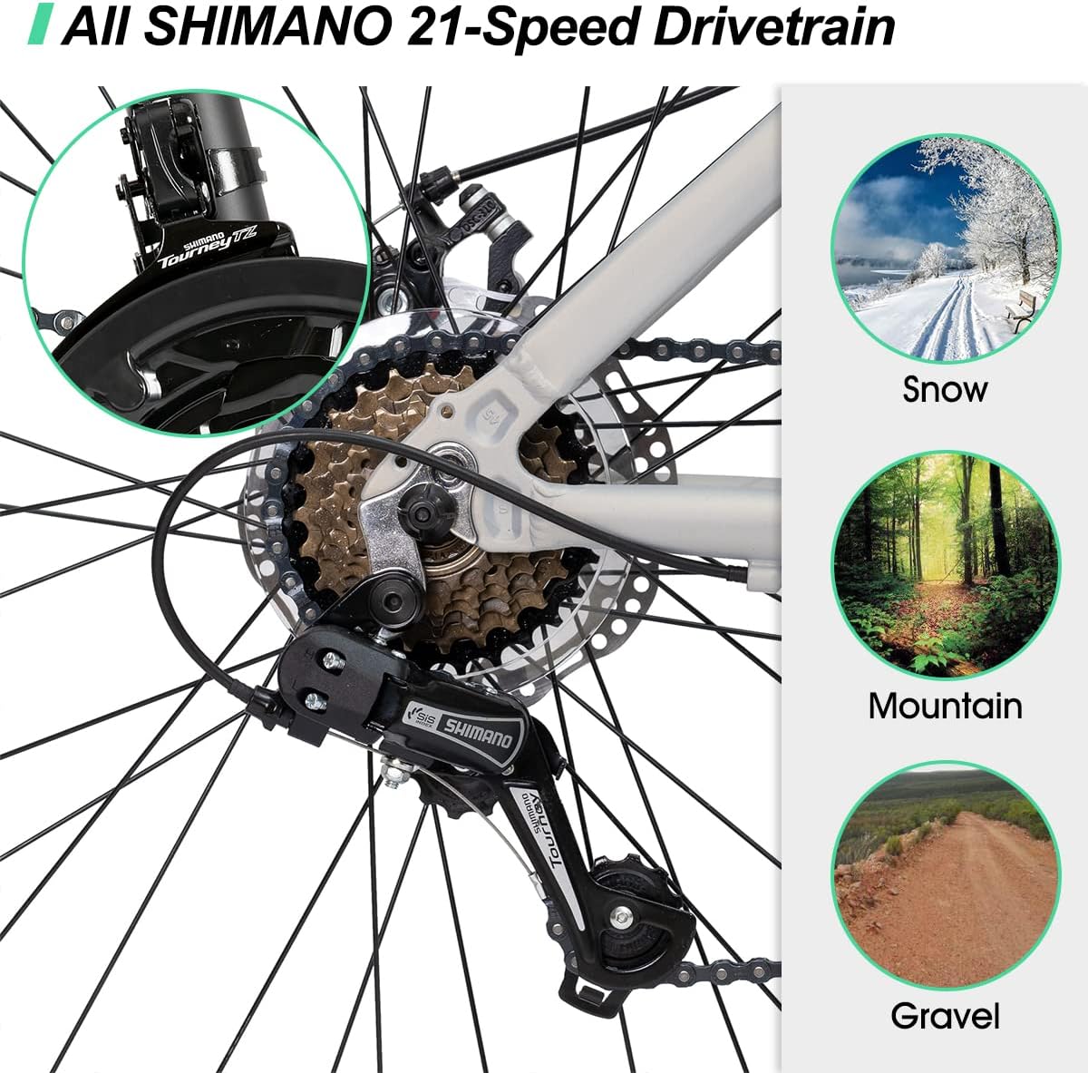 Professional Drivetrain: 21 speed drivetrain is precise and simple to control, gives you more control for climbing and room to get low on descents, corners and jumps; Disc brake helps rider stop immediately in all conditions to ensure safety