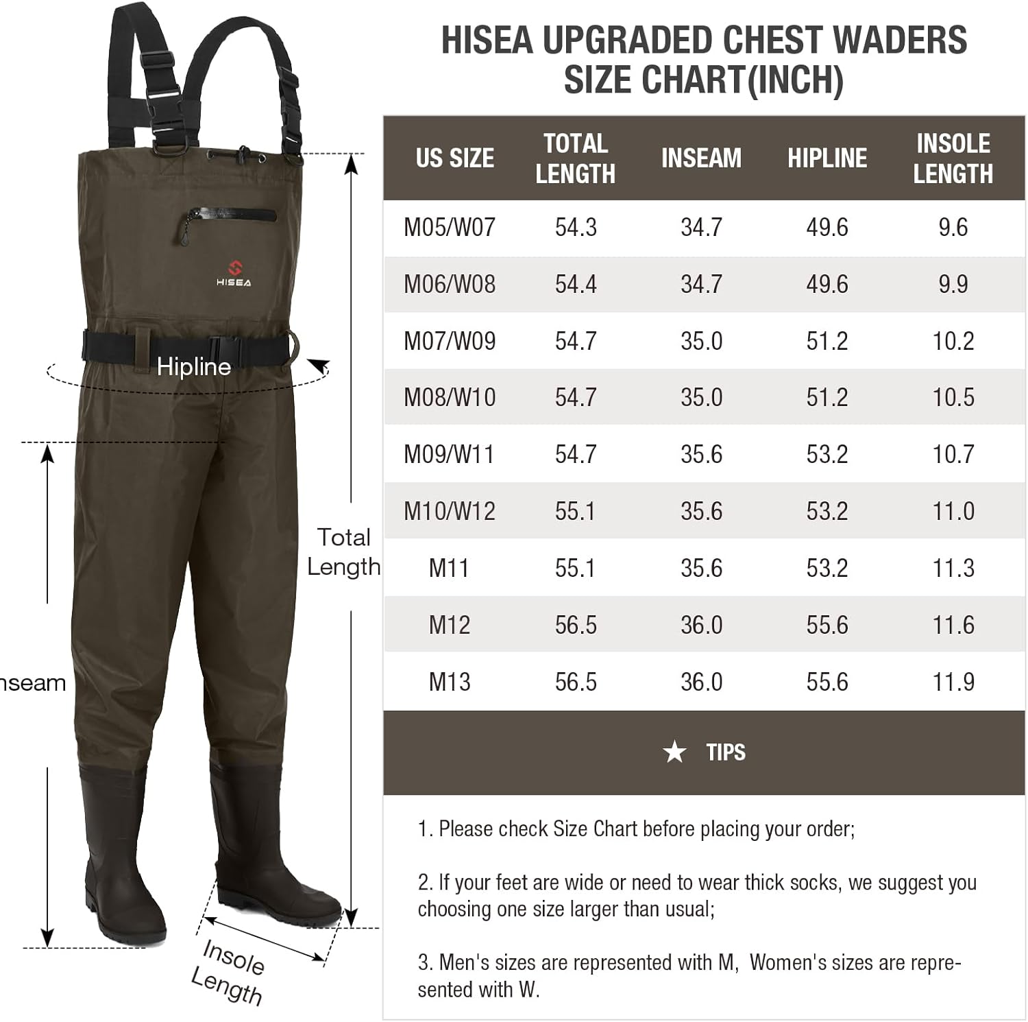 Used Widely-Hisea Chest Waders are designed to keep you dry and warm, even in the toughest work and sports conditions. They are ideal for fishing, hunting, and farming etc.