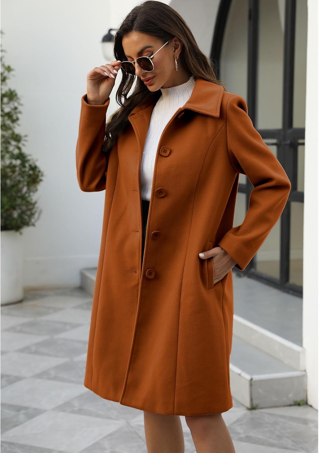 Hixiaohe Women’s Wool Pea Coat Single Breasted Trench Coat Winter Lapel Long Jacket Overcoat with Pockets
