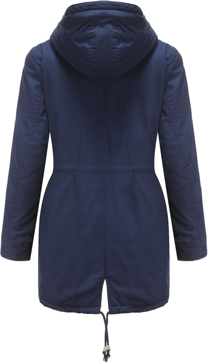 The jacket is suitable for inside and outside occasion with superior shell&fleece lining.The inside zip extends from the stand up collar to the hem, adding warmth and protection in the outside. Adjustable drawstring waist is designed to give you a better fit.The sleeves stuff with synthetic fibers cotton and the adjustable storm cuff with metal button also provide maximized warmth.