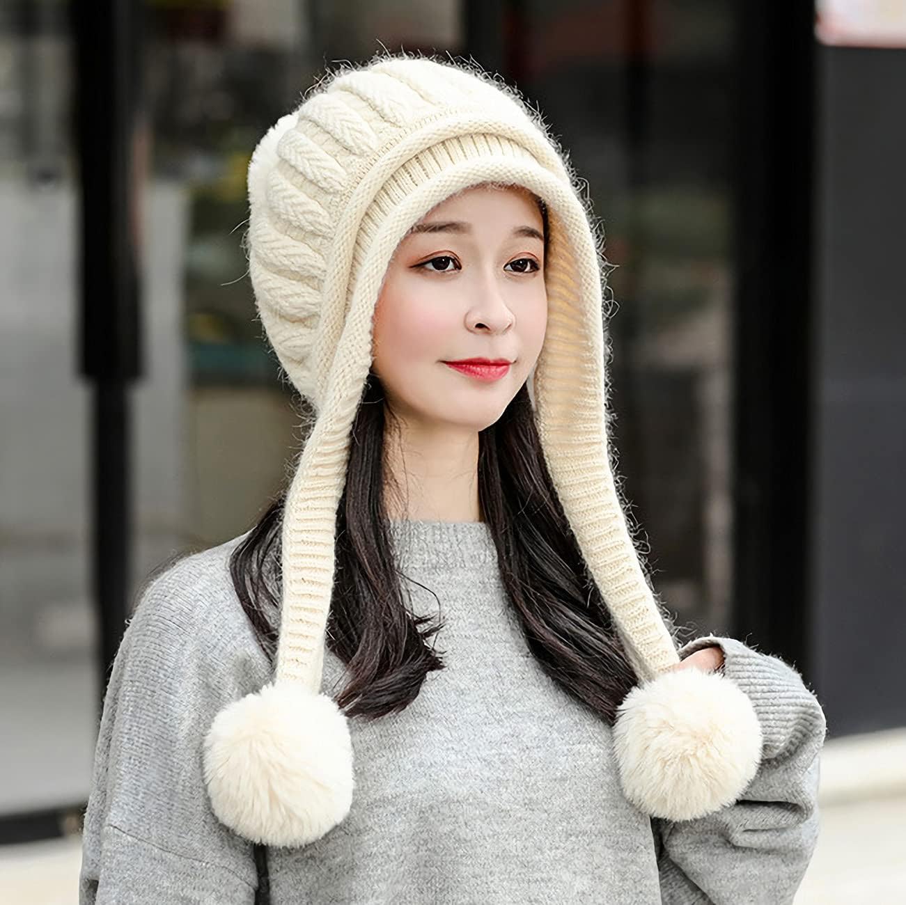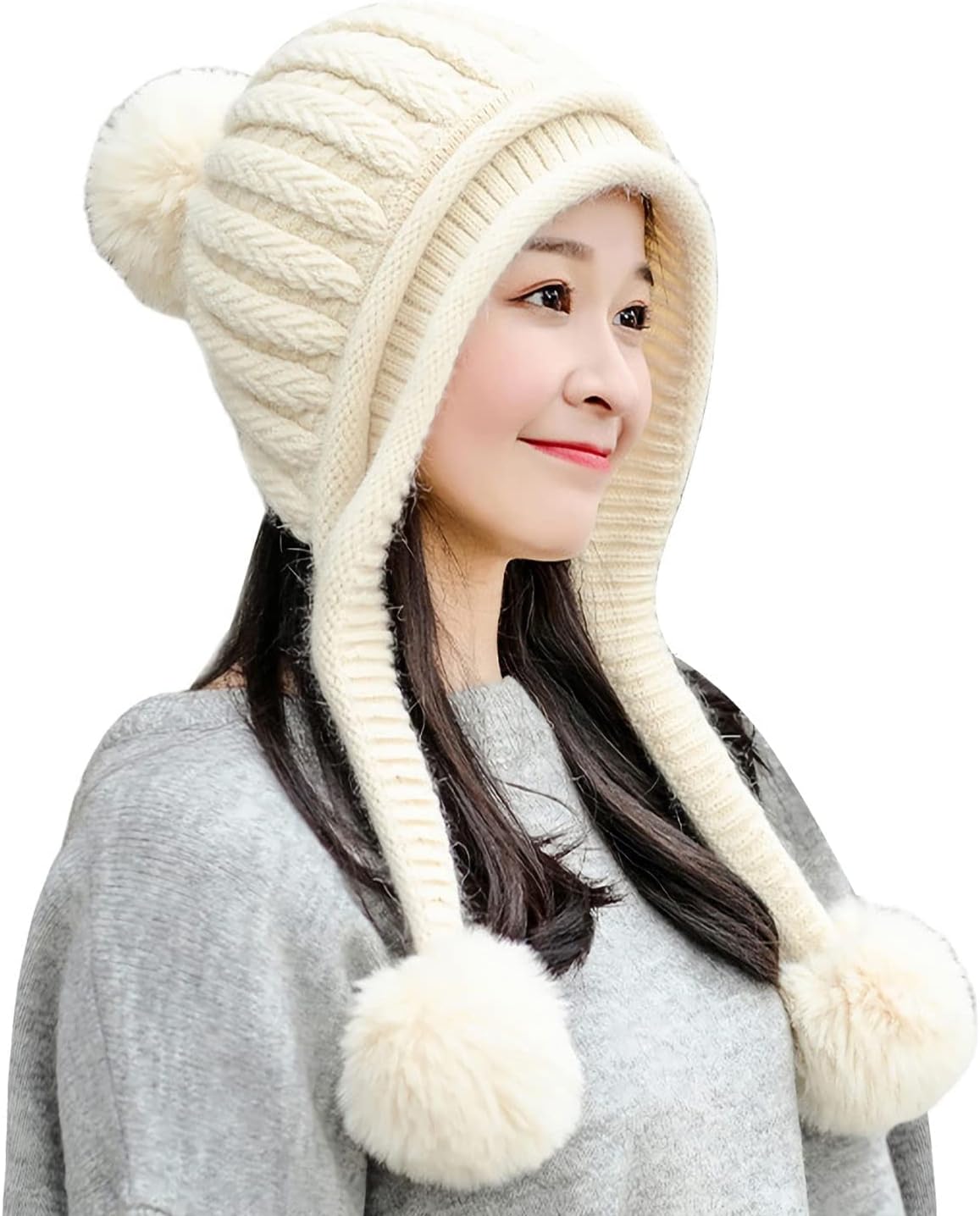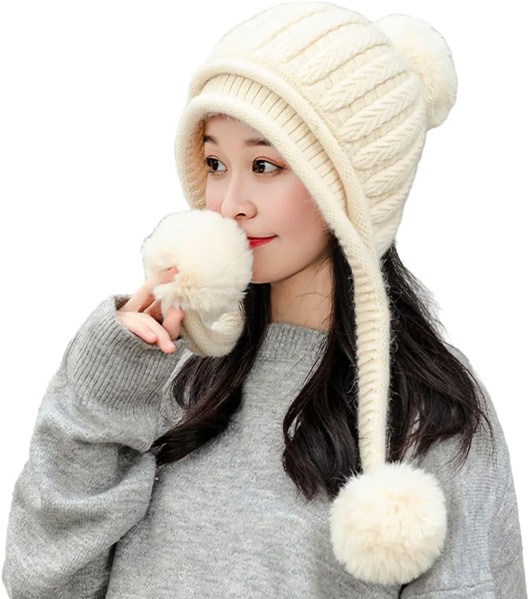 HUAMULAN Women Winter Peruvian Cover Ears Beanie Hat Ear Flaps Sherpa Ski Snow Hats Knit Fleece Lined 3 Pom Pom