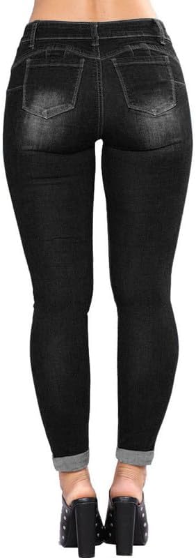 HUNGSON Women Low Waist Skinny Stretch Ripped Jeans Destroyed Denim Pants
