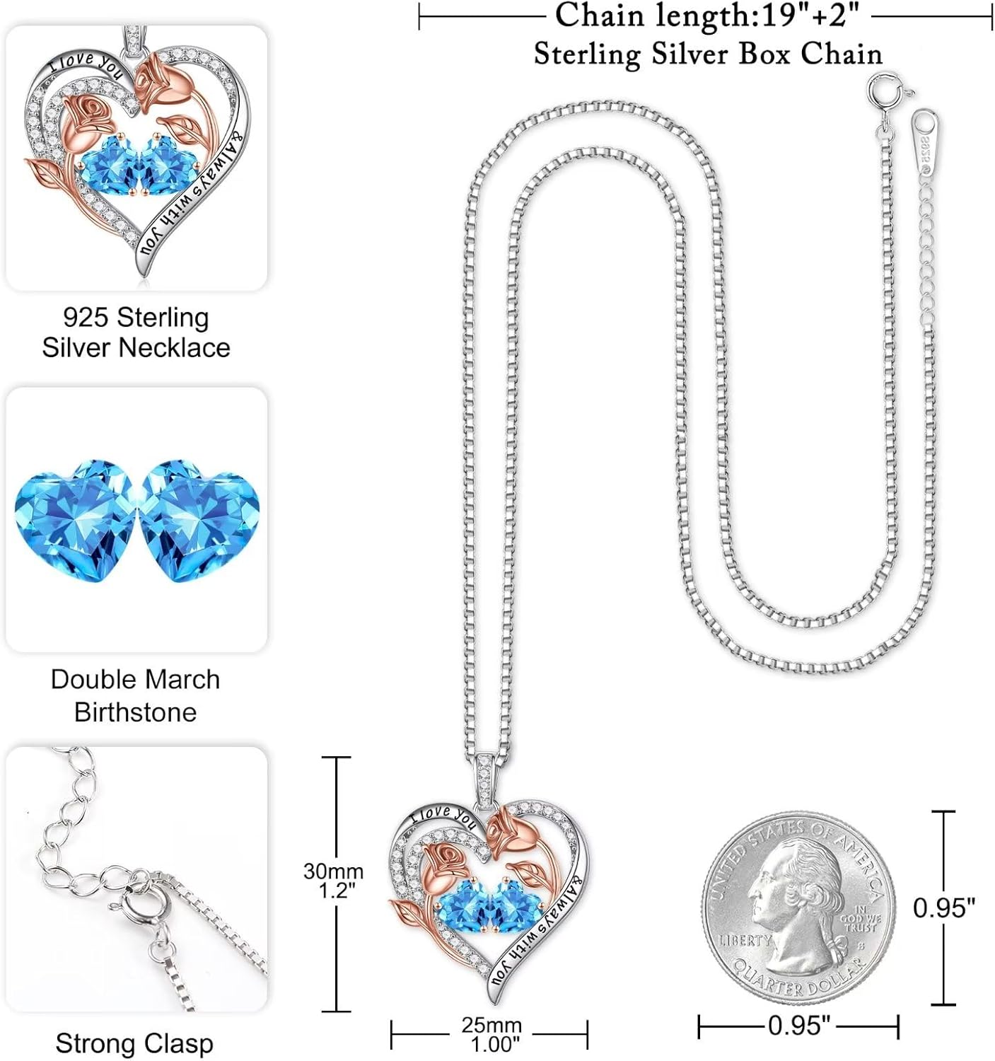 Iefil Birthstone Necklace for Women – 925 Sterling Silver Rose Heart Birthstone Necklace Birthday Anniversary Jewelry Gifts for Her Wife Mom Daughter