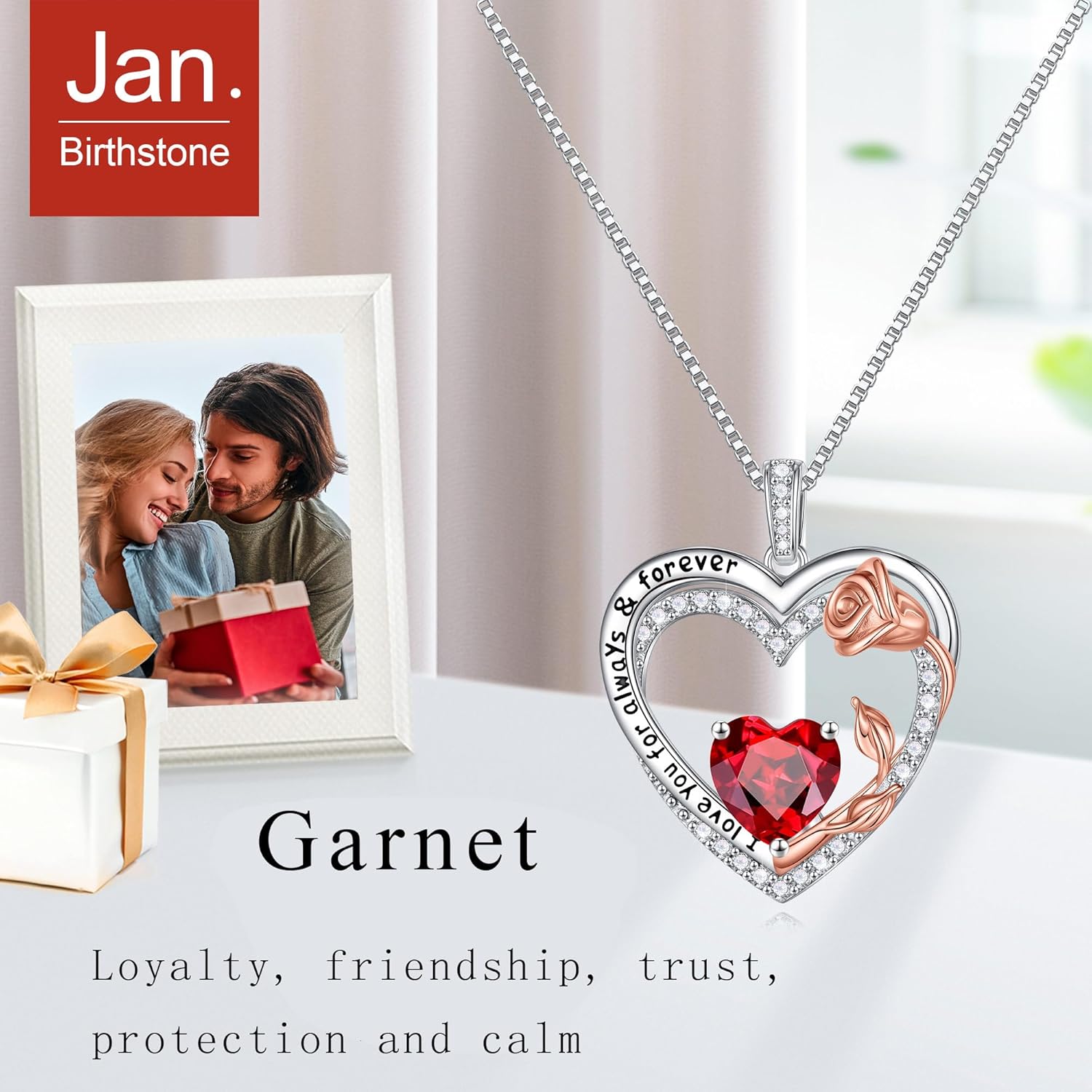 Iefil Mothers Day Gifts – Rose Heart Birthstone Necklace for Women | 925 Sterling Silver Heart Pendant Birthstone Necklace | Anniversary Birthday Jewelry Gifts for Women Mom Wife Girlfriend