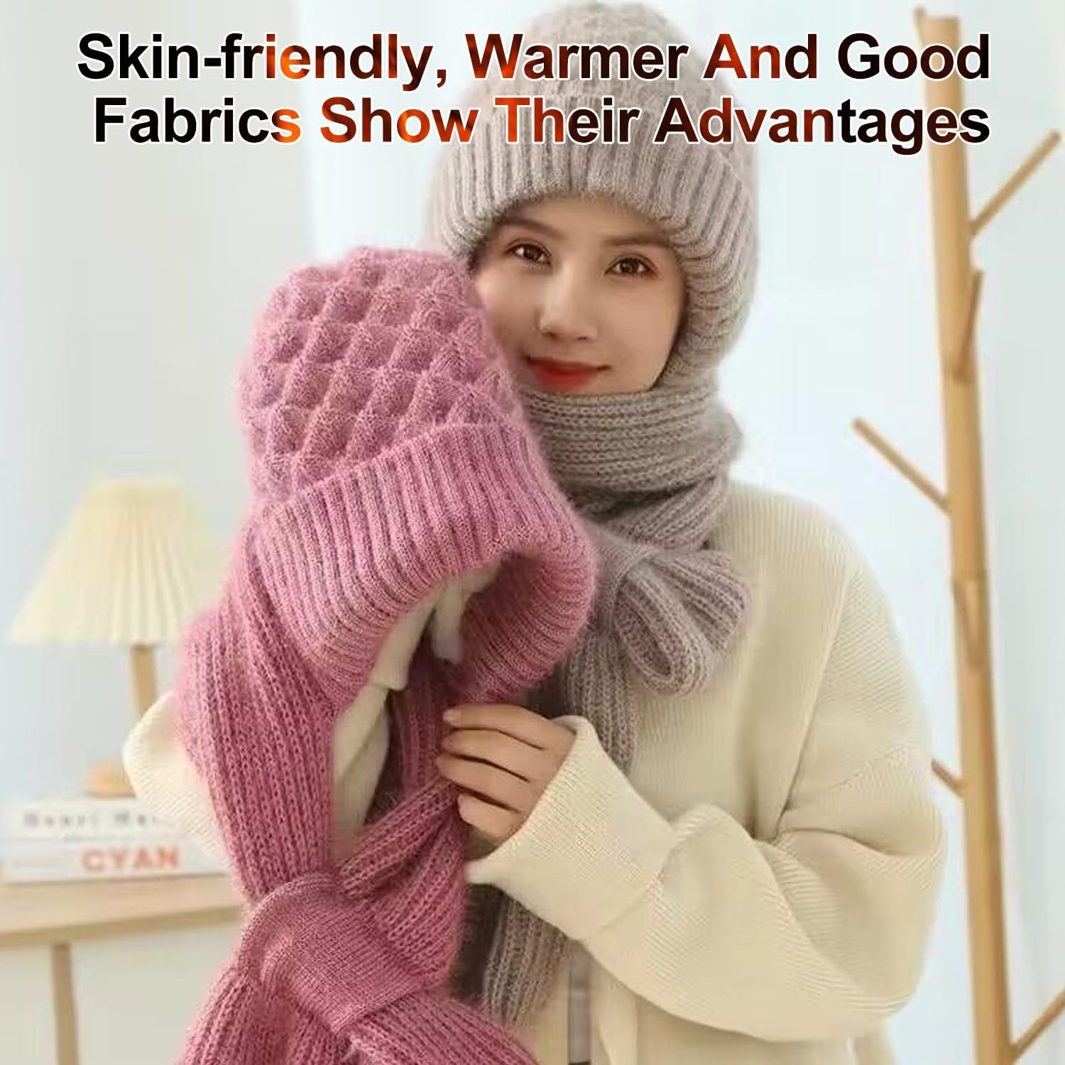 Integrated Ear Protection Windproof Cap Scarf, Winter Warm Conjoined Ear Protection Knitted Hat, Thickening Beanie Hat Scarf
