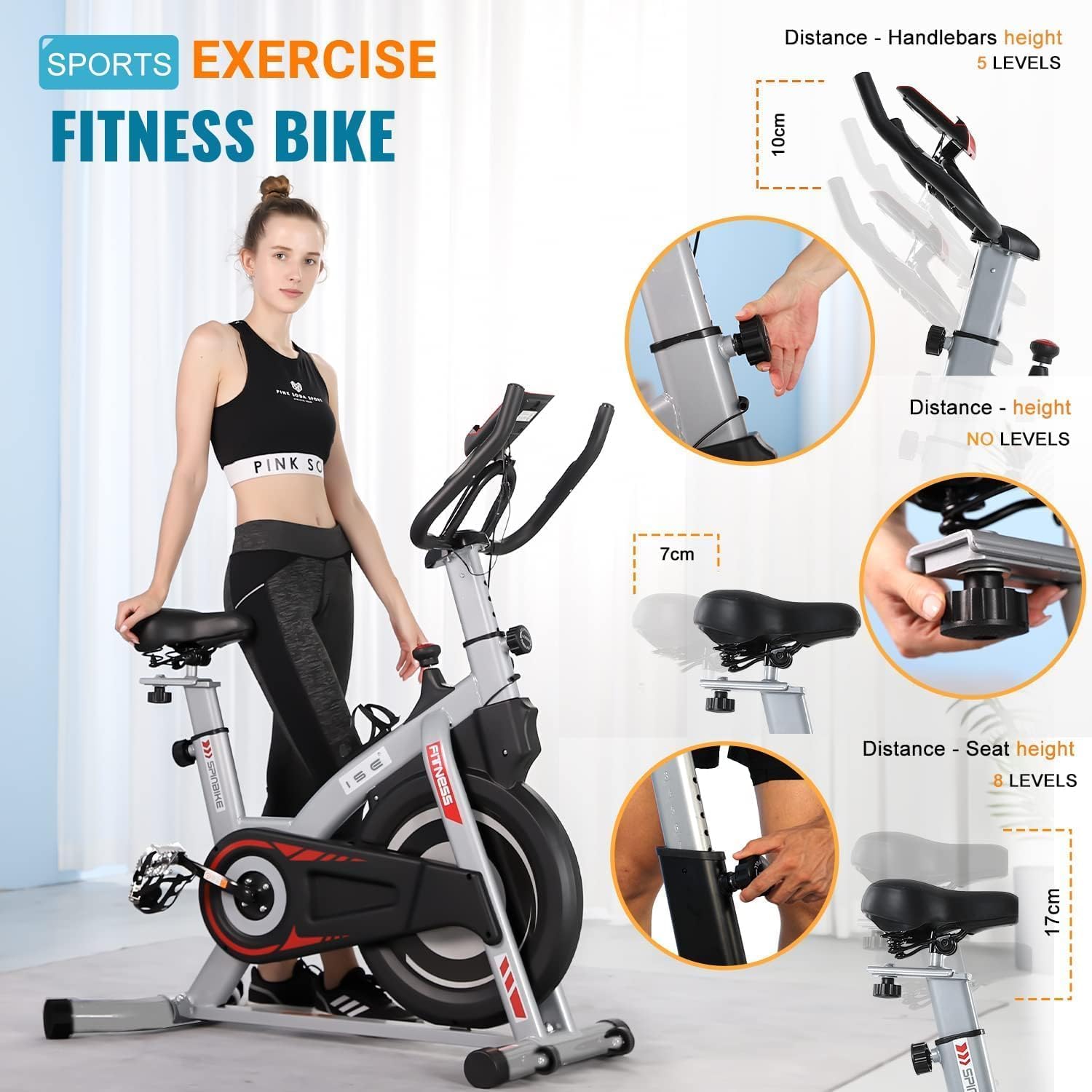 This is an adjustable, low noise and equipped with sensors and LCD display exercise bike.