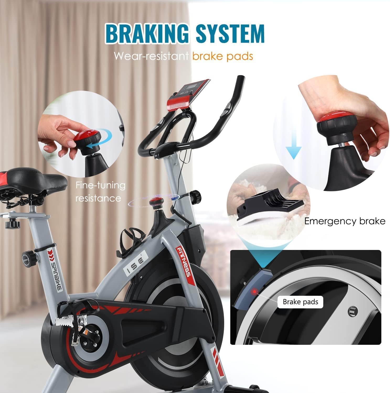 [Safe and Low Noise] The design of this exercise bike or training device clearly prioritizes safety and low disruption to the surrounding environment. The emergency brake resistance system is able to respond quickly when needed to prevent accidents from occurring, while the non-slip pedals further enhance the user’s stability during use. In addition, the use of a belt drive system not only improves the operating efficiency of the device, but also significantly reduces noise levels, allowing users to train without disturbing others. This design undoubtedly enhances the overall user experience and comfort of the training environment.