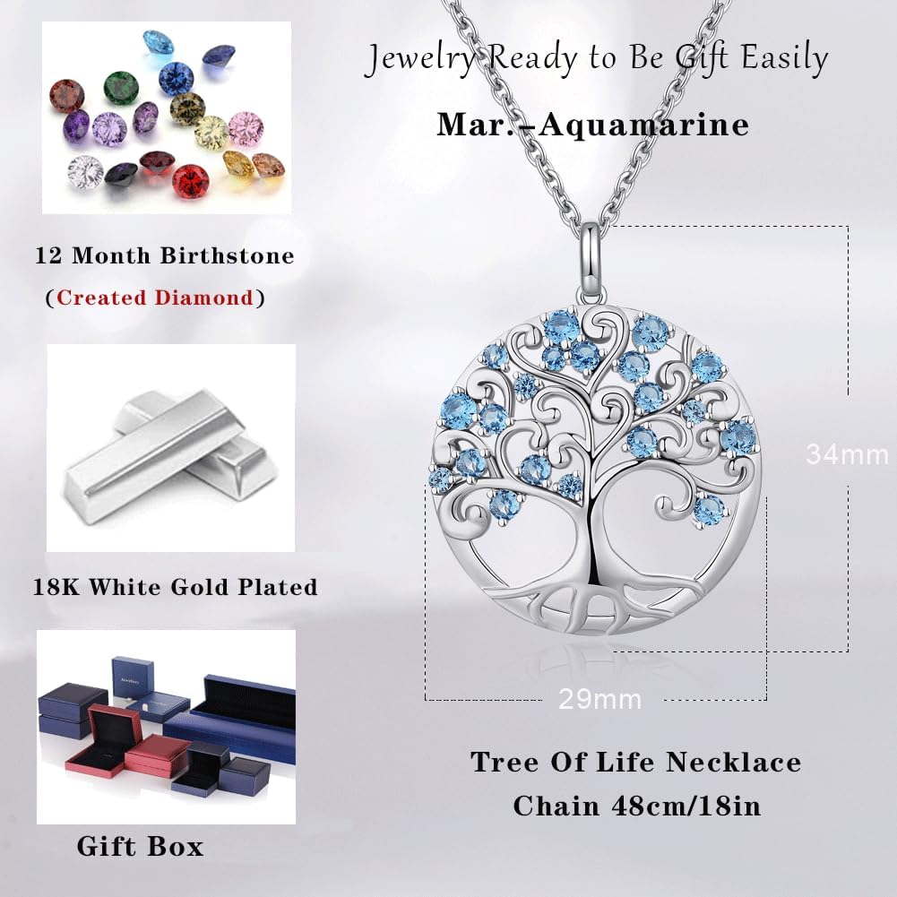jiamiaoi 18K White Gold Plated Tree of Life Necklaces for Women Cubic Zirconia Tree of Life Necklace with Birthstones,Great Gift for Women/Mother/Wife