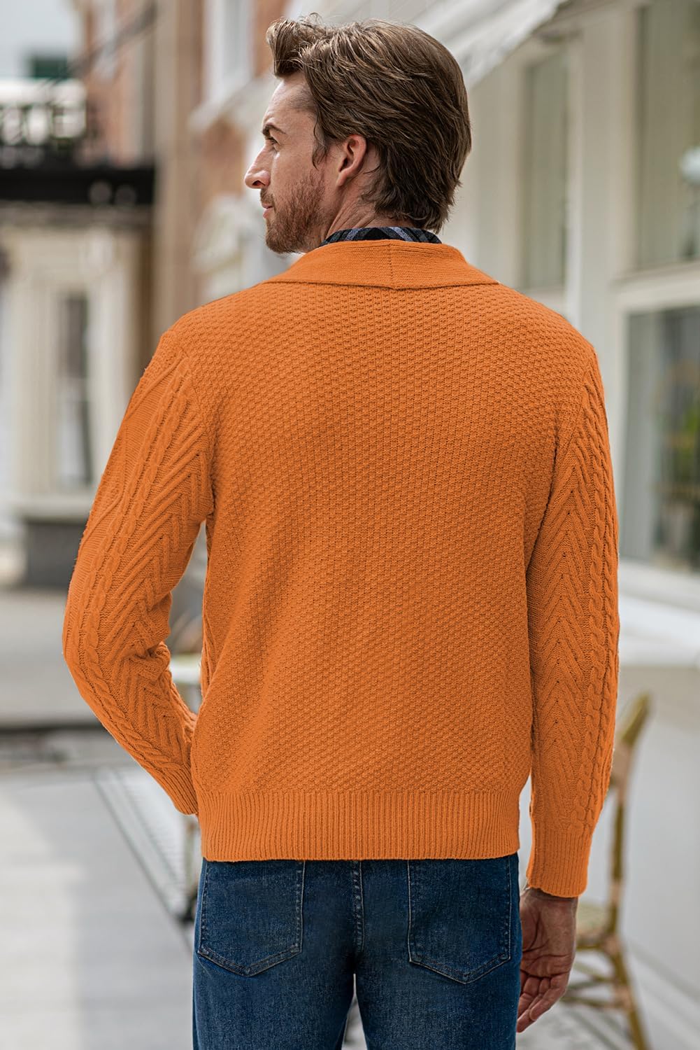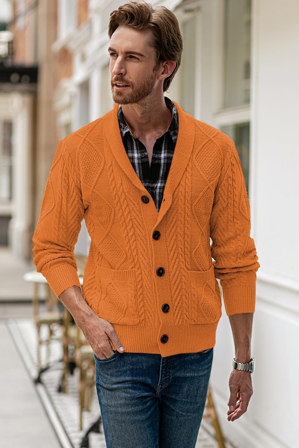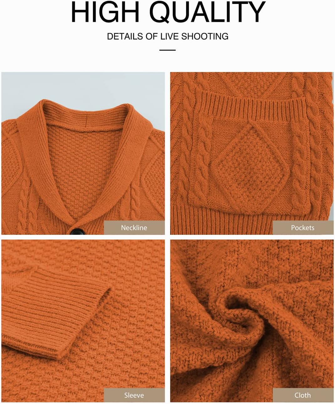 JMIERR Men’s Casual Long Sleeve Shawl Collar Buttons Down Cable Knit Cardigan Sweater with Pockets