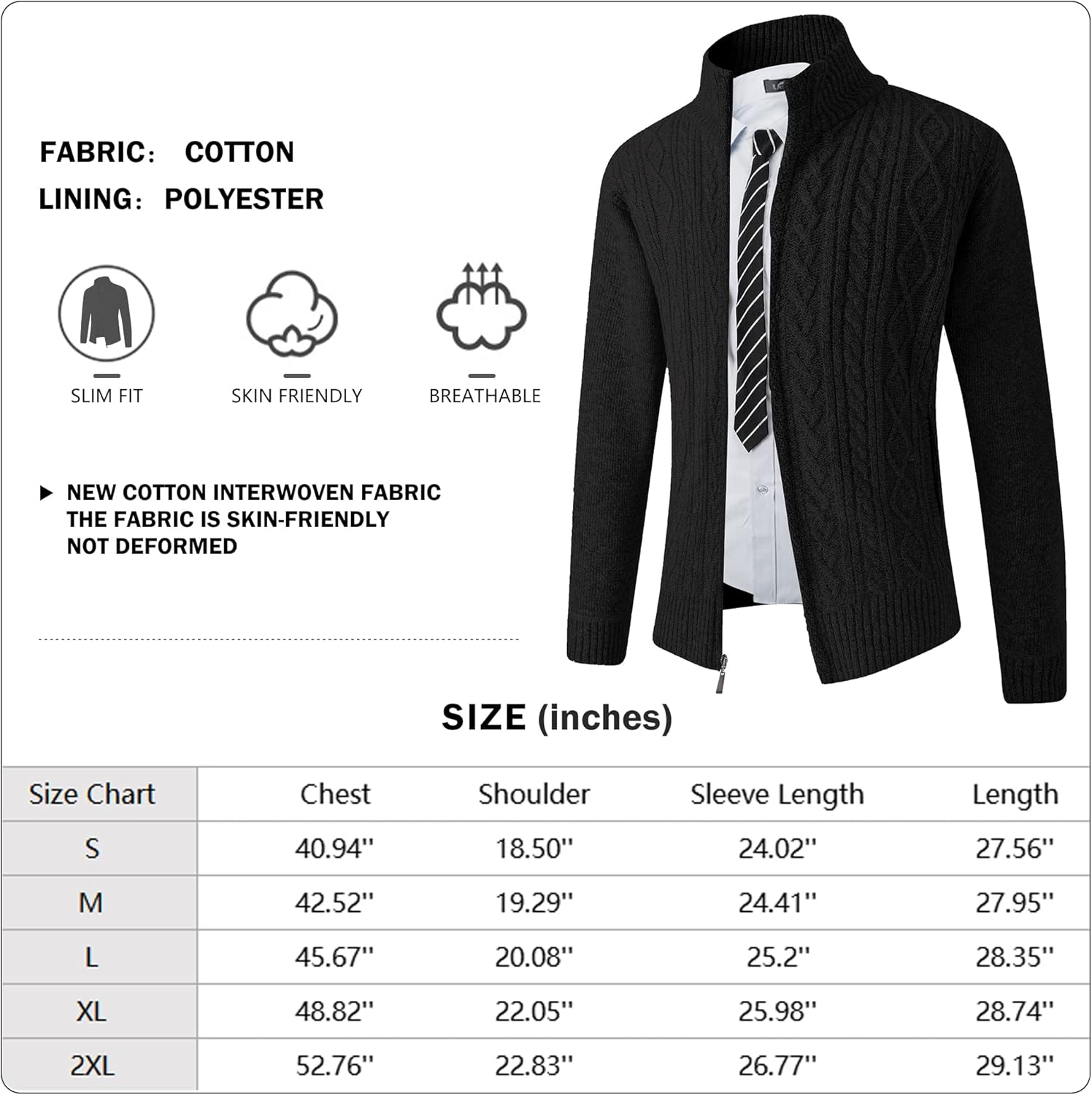 JYG Cardigan Sweaters for Men Full Zip Fleece Lined Slim Fit Knitted Sweater with 2 Front Pockets