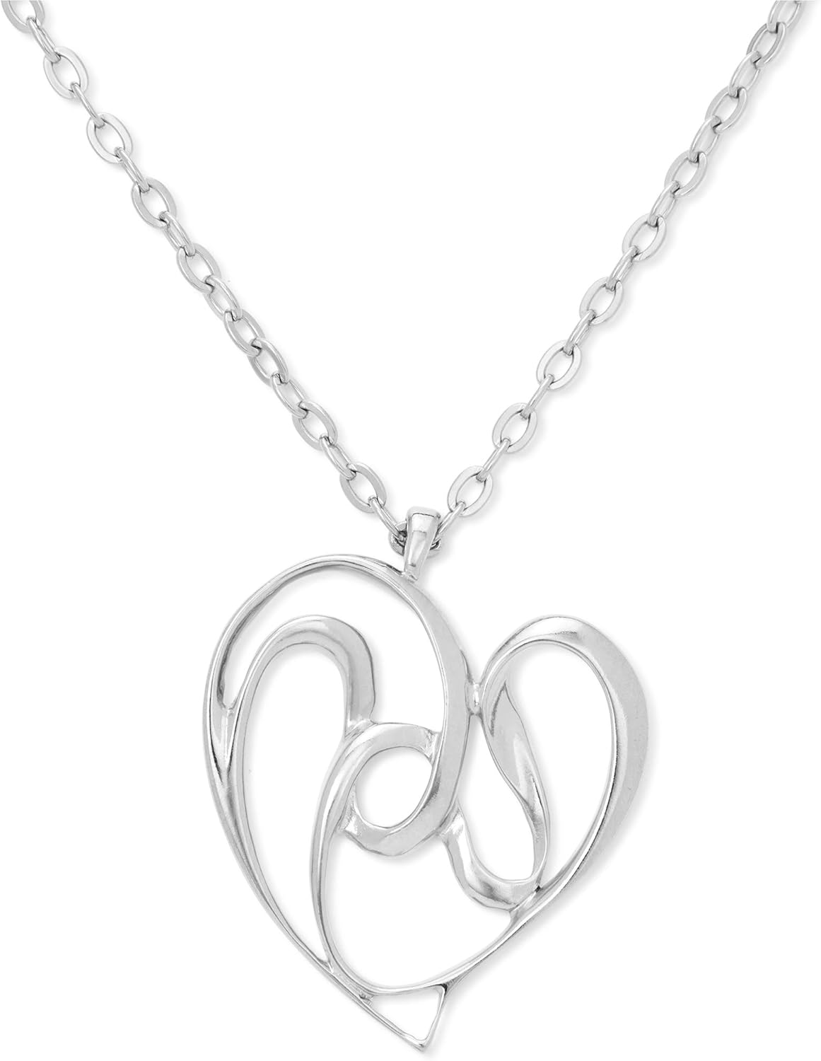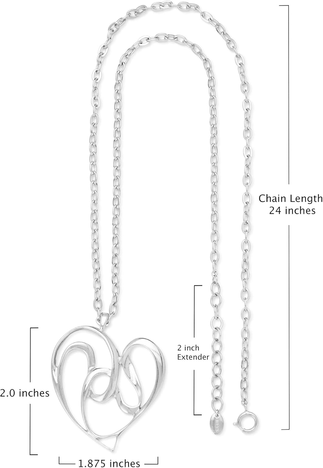 KA-TAL’ Heart Pendant Necklace Silver Tone with Long 24″ Chain +2″ Extender Gift Boxed