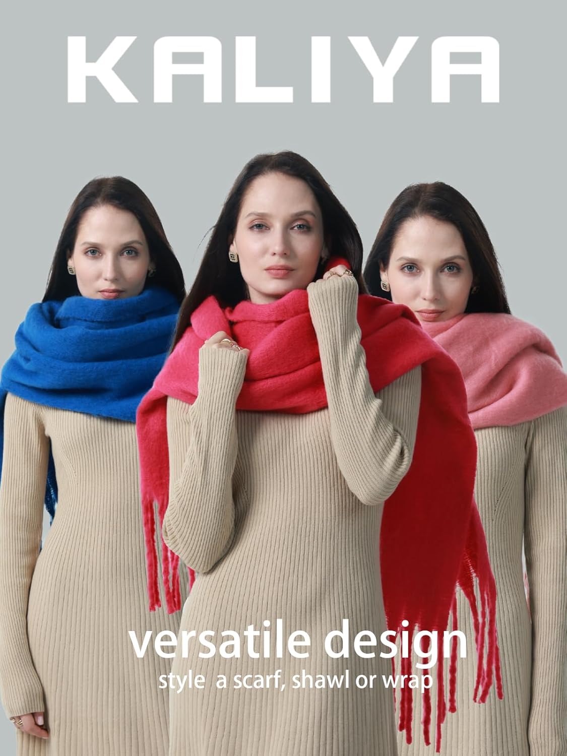 kaliya Womens Winter Scarf for Women Chunky Oversized Plaid, Women’s Fashion Scarves Colorful Large Christmas Blanket Scarf