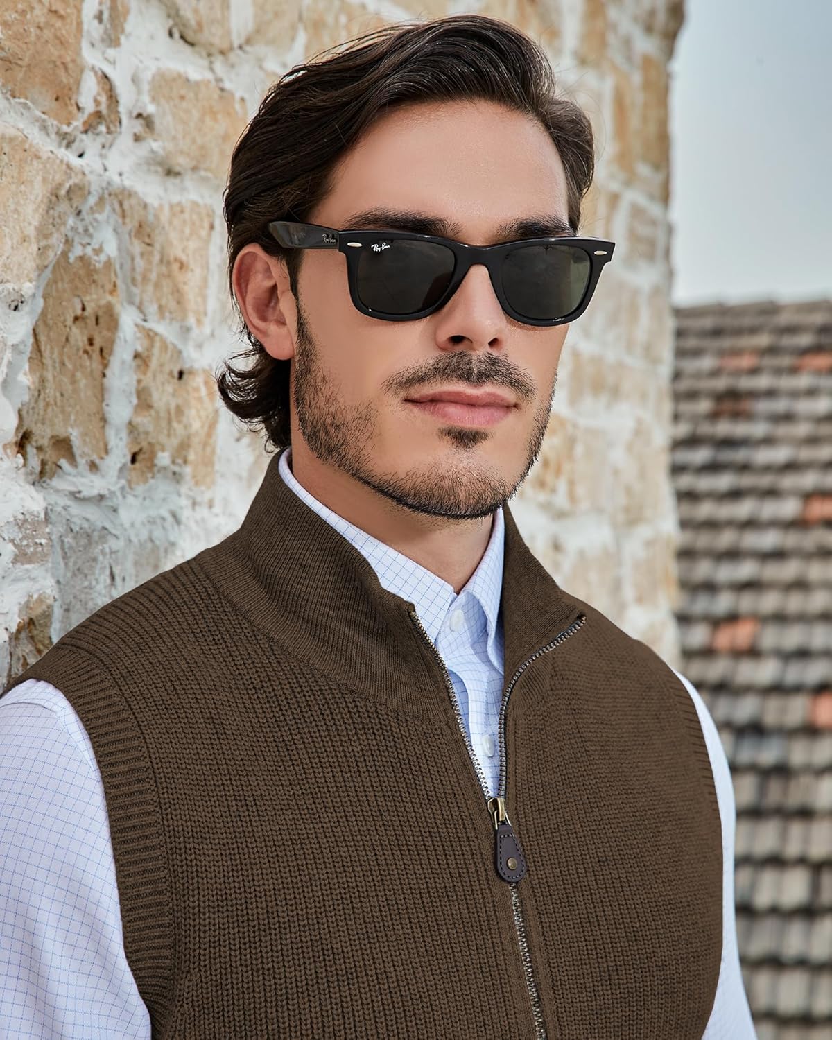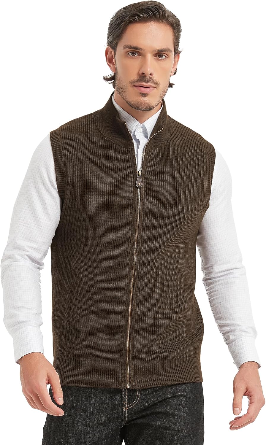 Kallspin Men’s Thick Wool Blend Sleeveless Cardigans Full Zip Up Knitted Sweater Vest Casual Outerwear