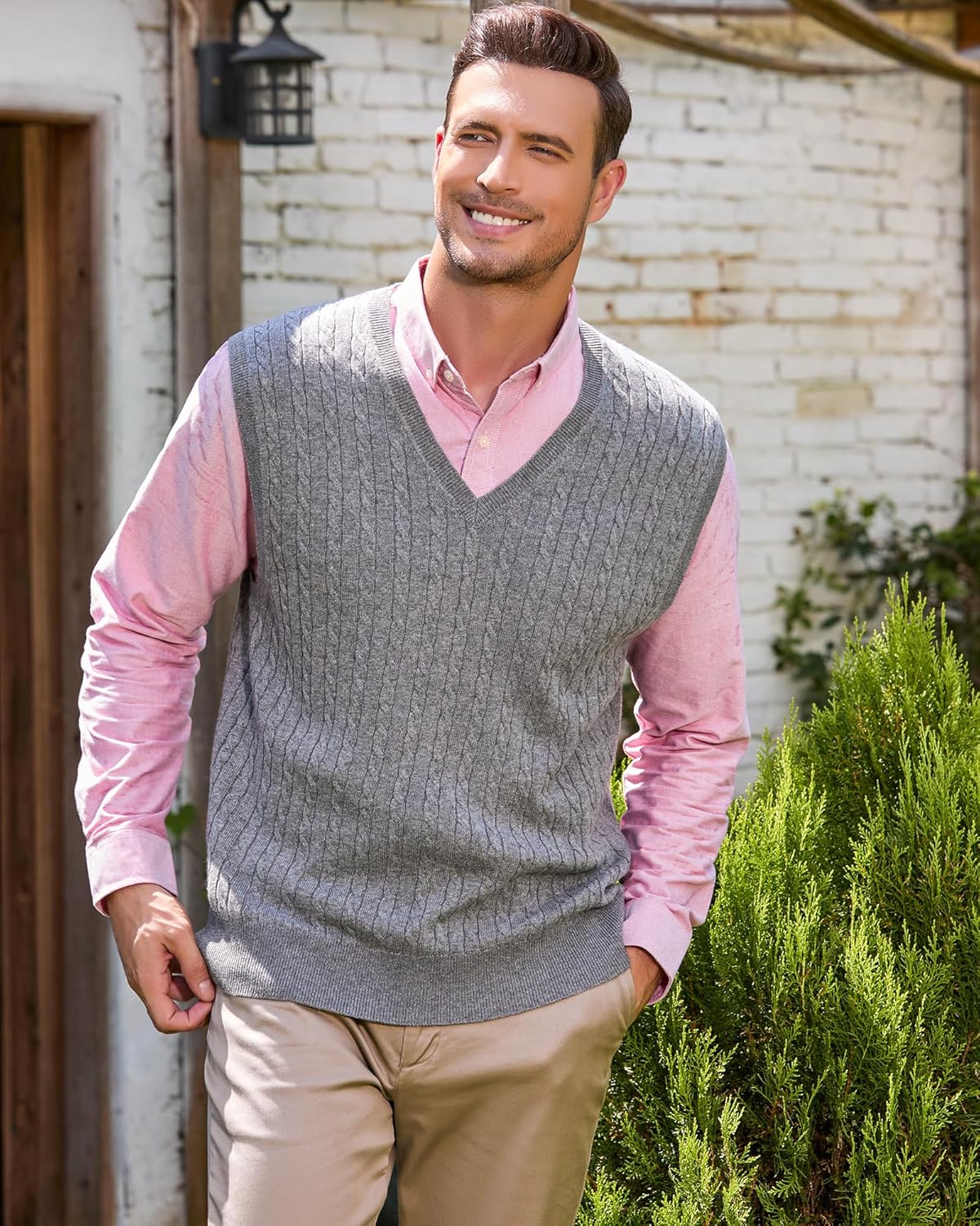 Men’s Cable-knit Lightweight Vest Pullover Sweater