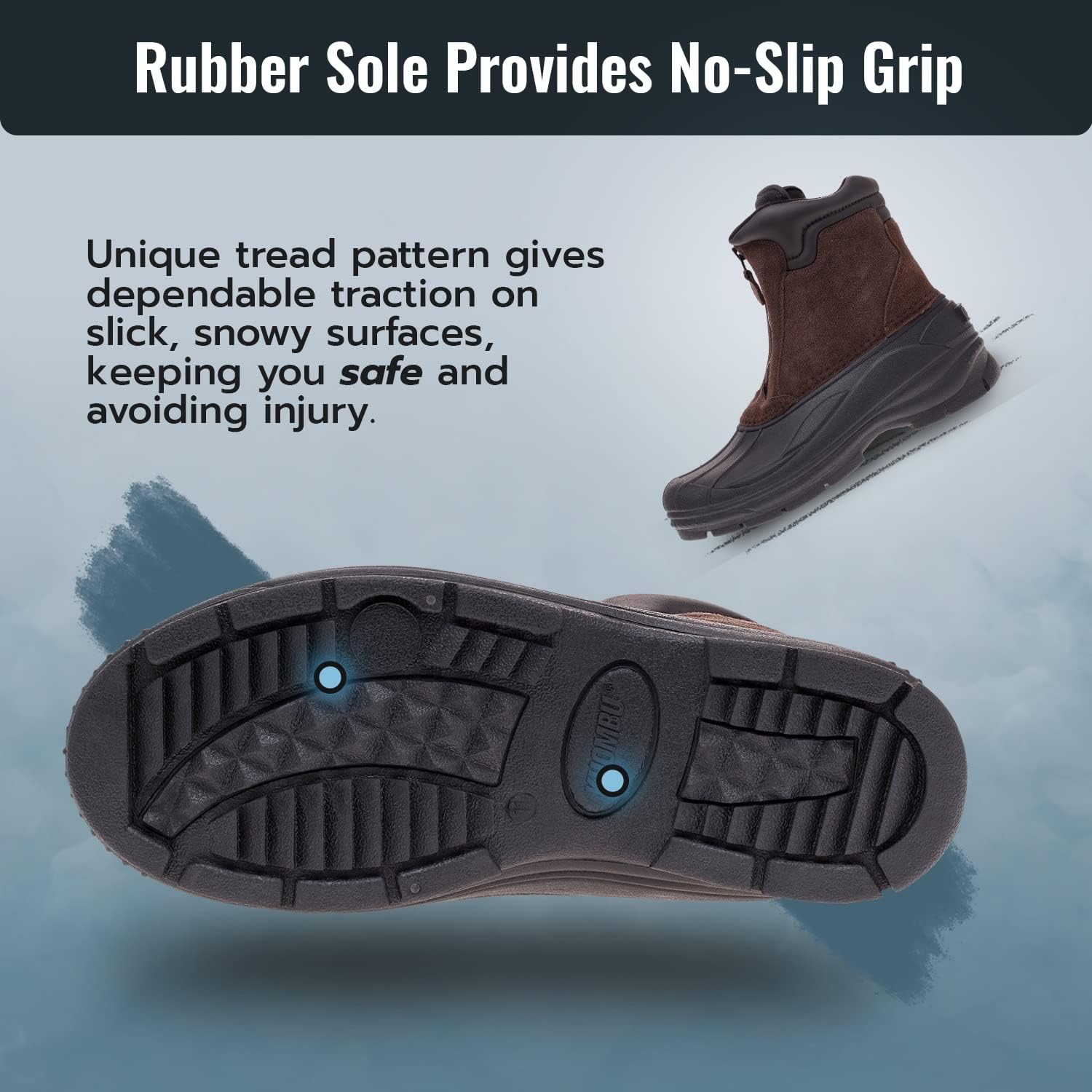 Our no-slip grip helps keep your feet under them while treading slick, snowy surfaces. With a rugged sole and unique tread pattern, you will always find when you need it.