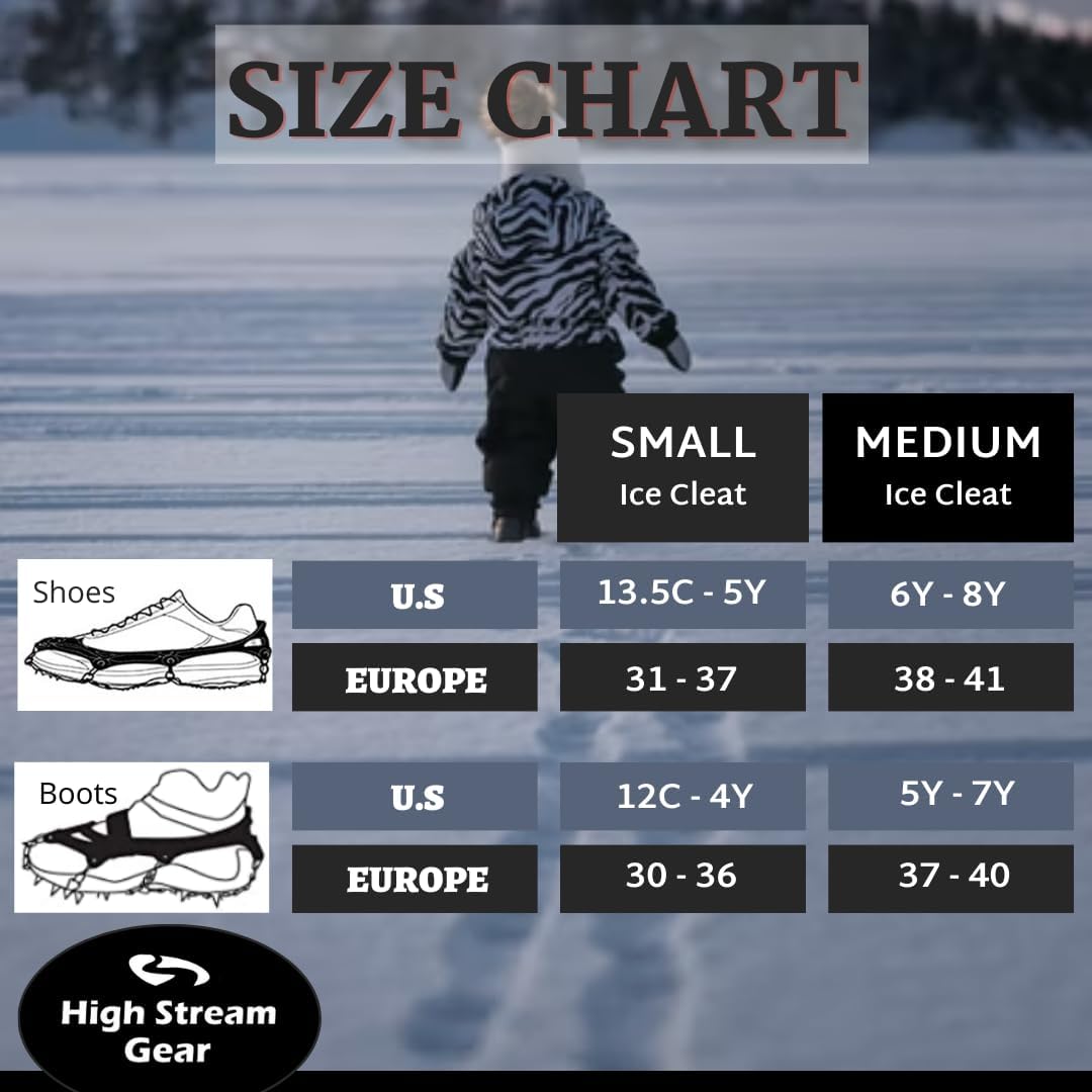 Kids Ice Cleats – Snow Crampons for Hiking Boots & Shoes with 14 Stainless Steel Spikes